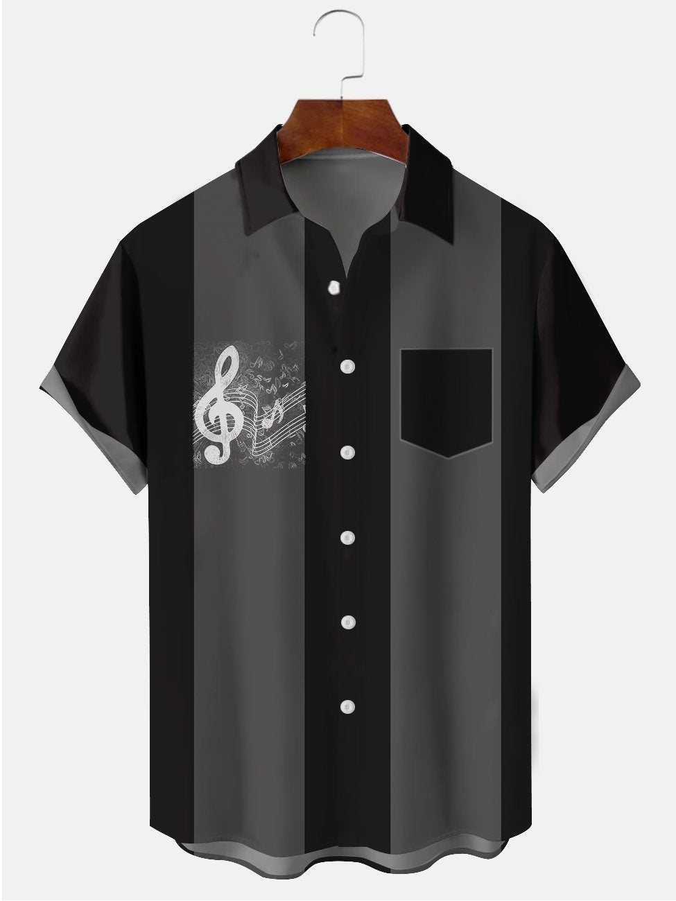 Alohadaddy Music Note Printed Bowling Casual Plus Size Shirts
