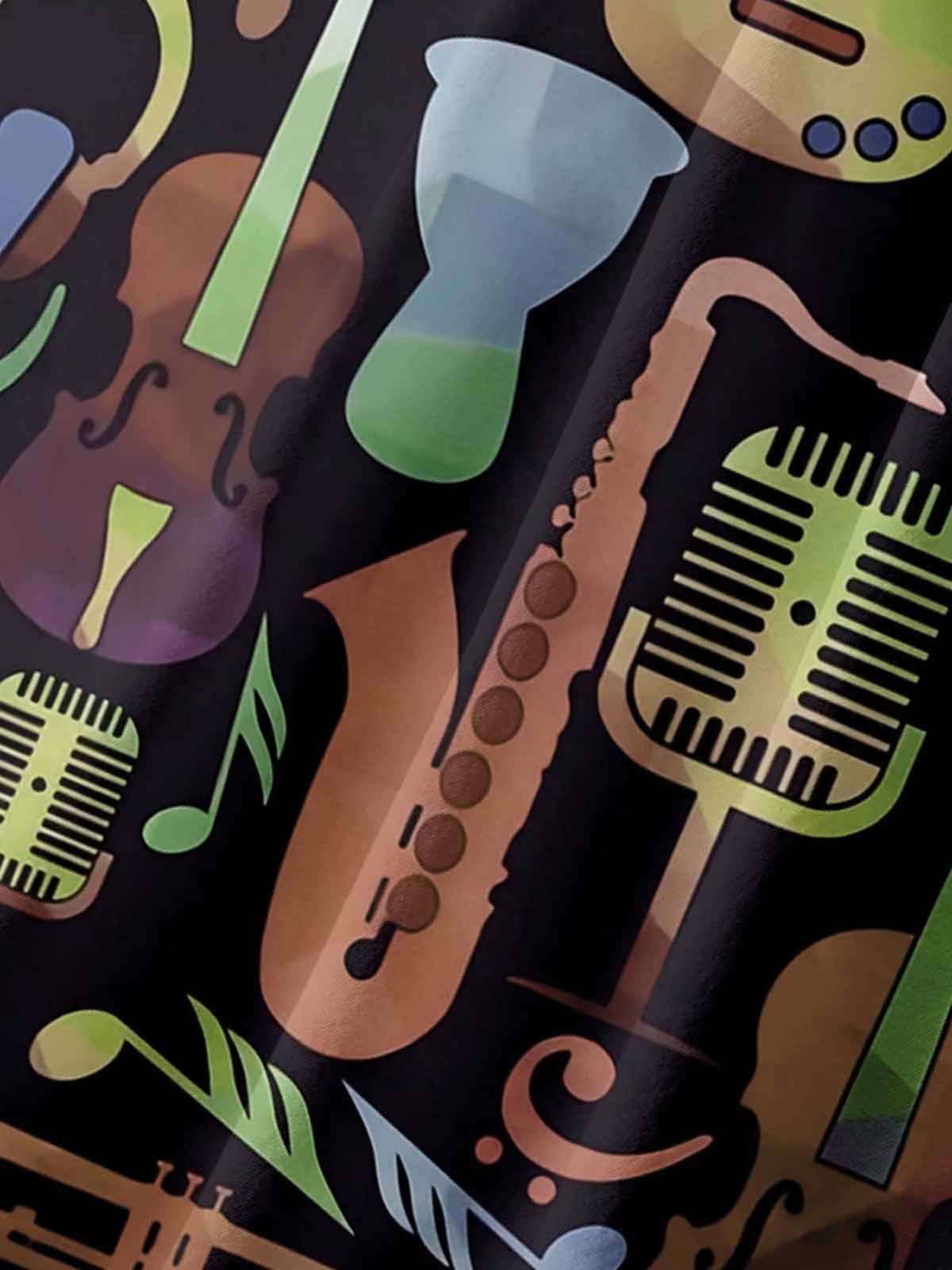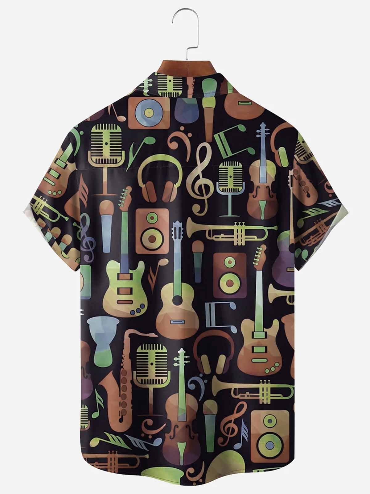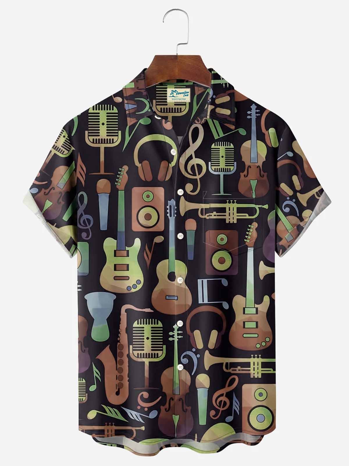 Alohadaddy Music Notes Chest Pocket Short Sleeve Casual Shirt