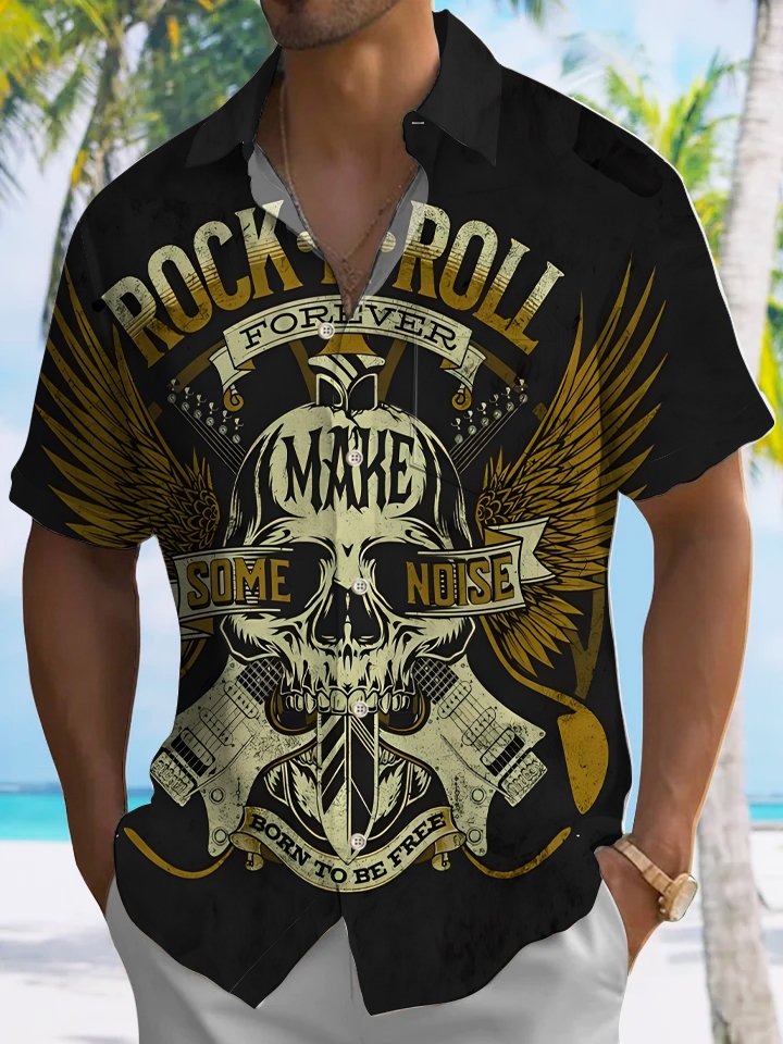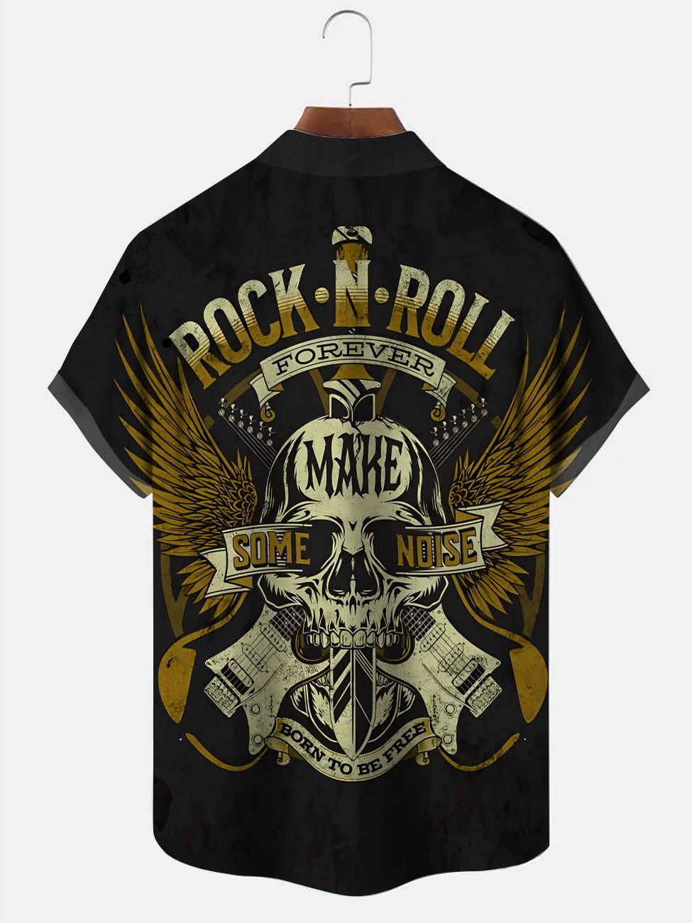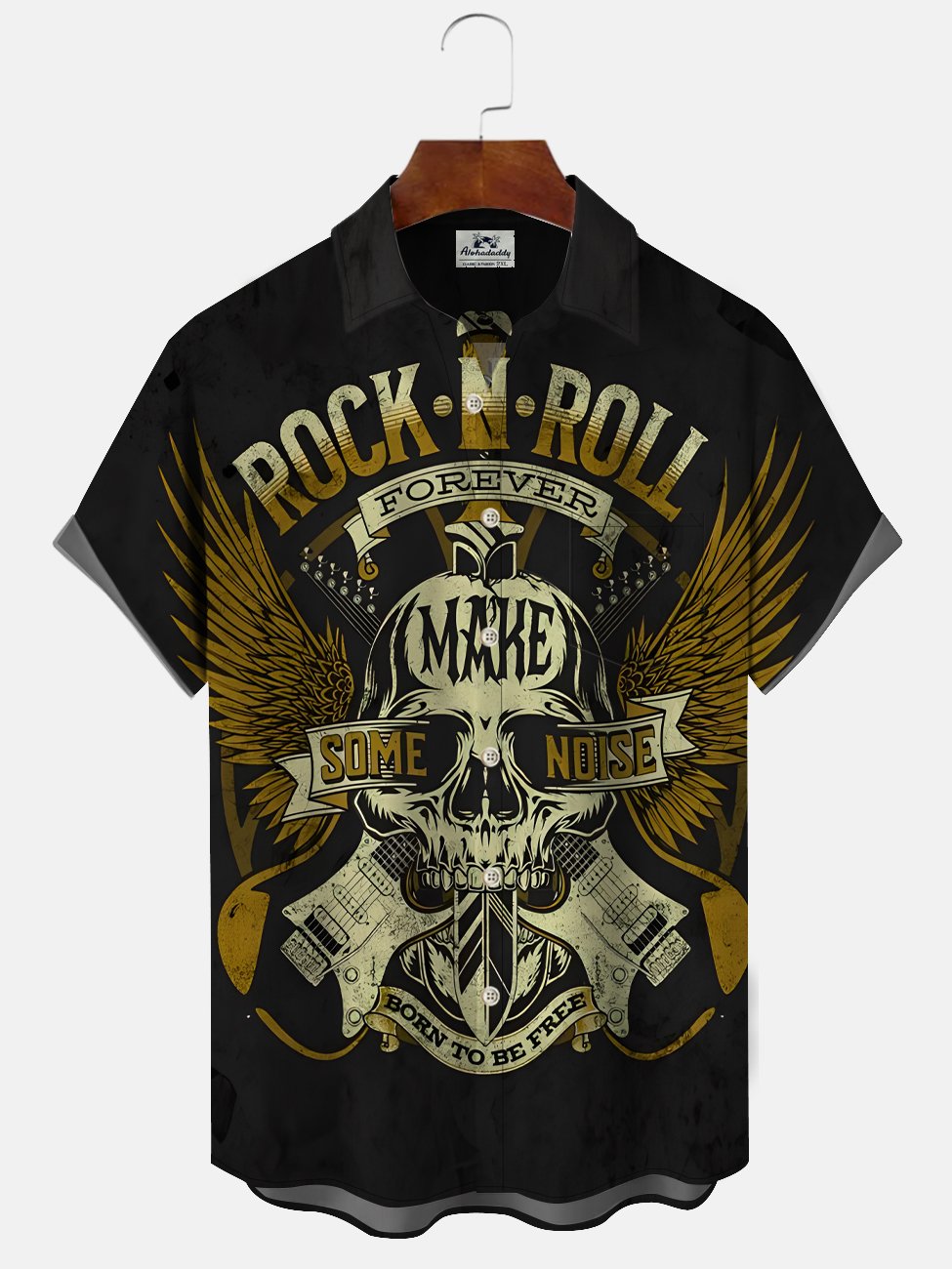 Alohadaddy Music Rock Roll Button Pocket Casual Short Sleeve Shirt