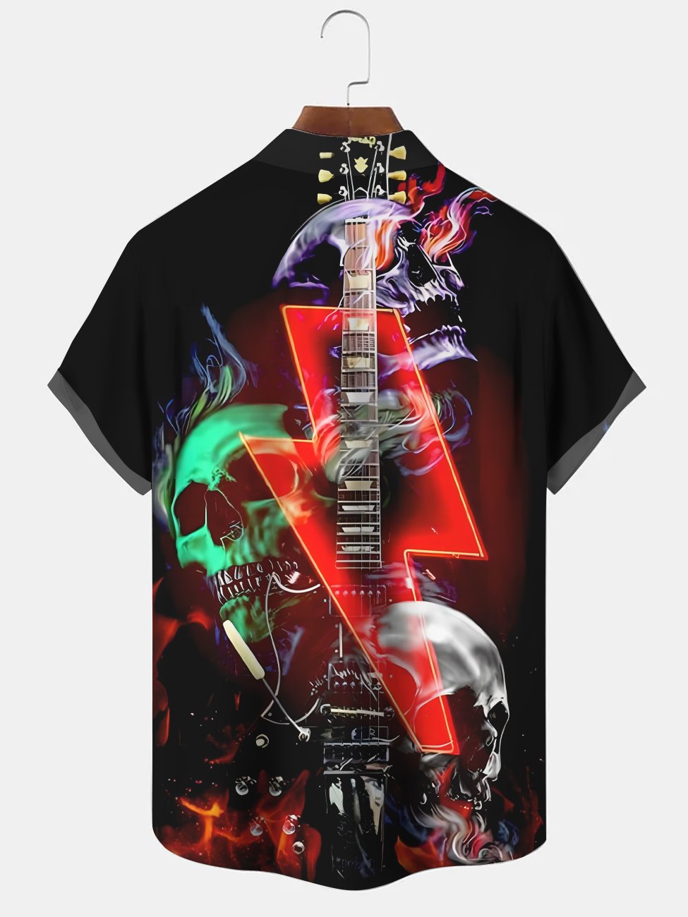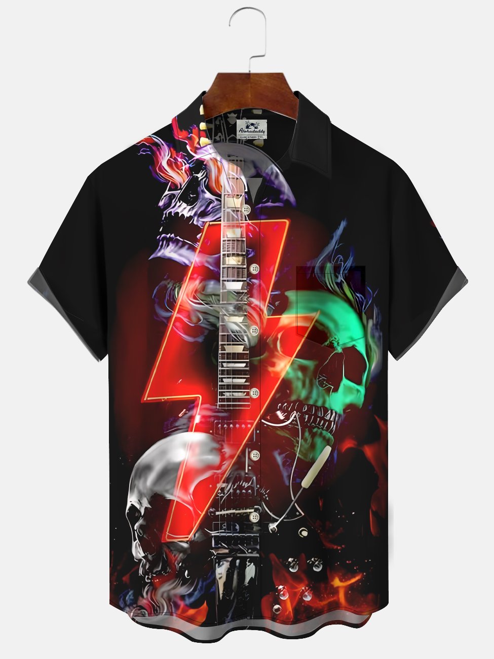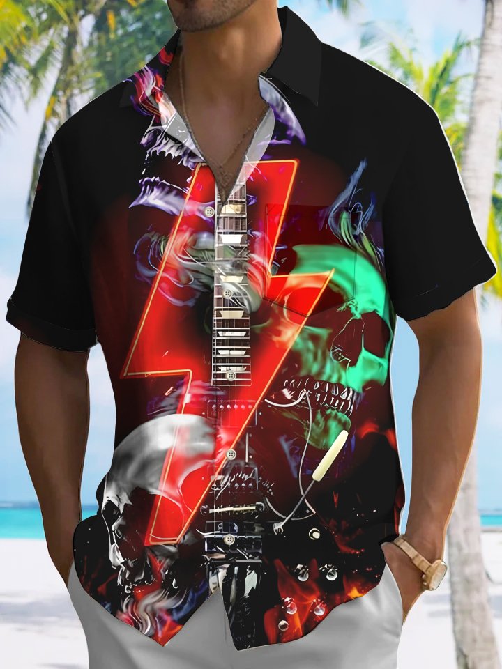 Alohadaddy Music Skull Button Pocket Casual Short Sleeve Shirt