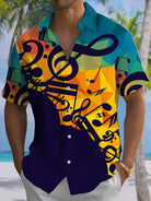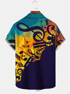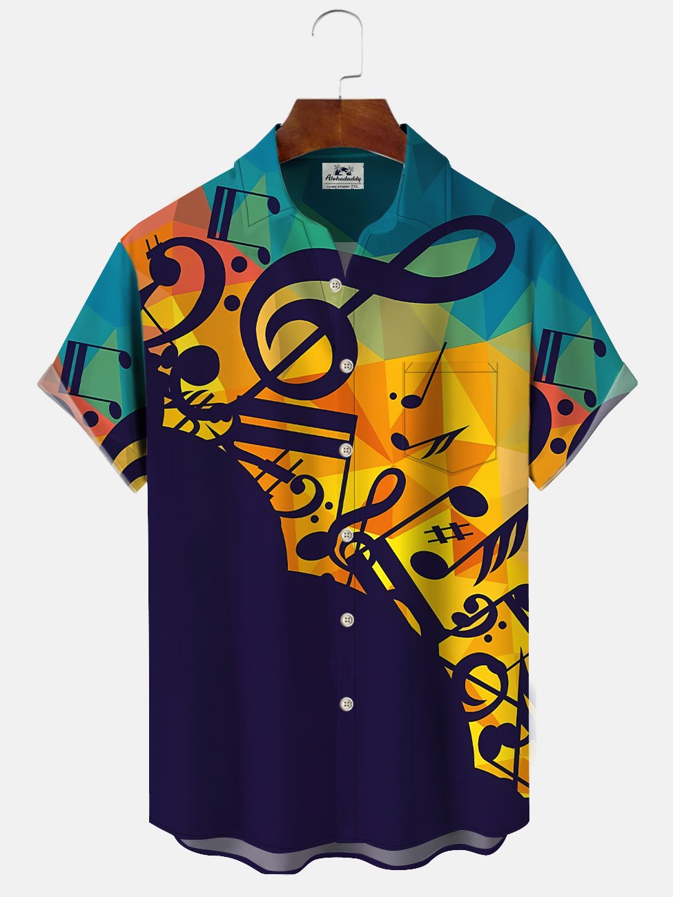 Alohadaddy Retro Music Contrast Button Pocket Casual Short Sleeve Shirt