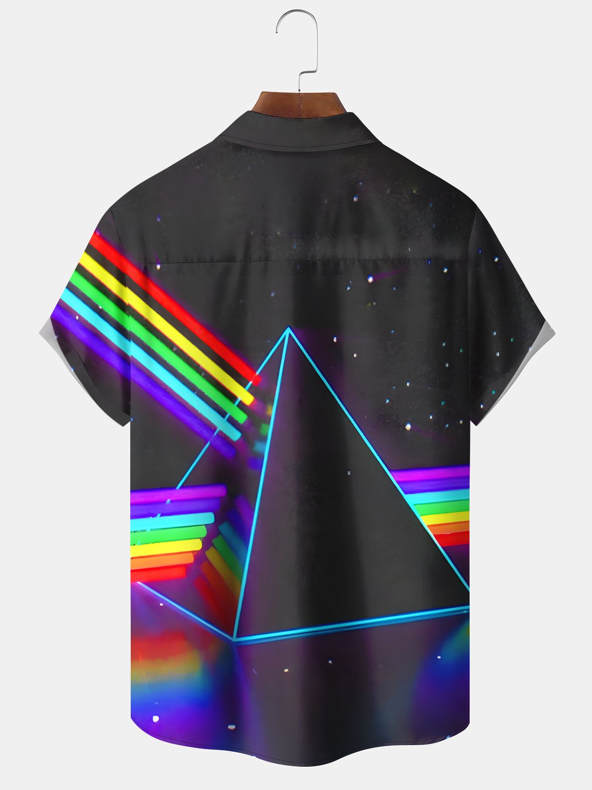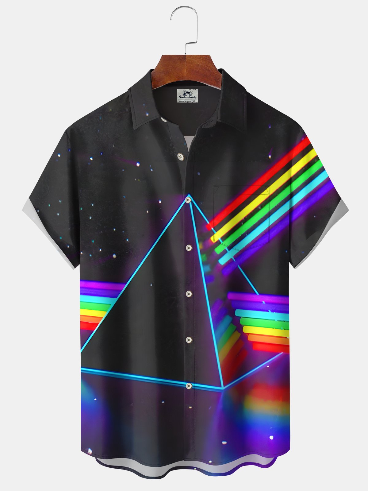 Alohadaddy Retro Music Geometric Gradient Rock Men's Pocket Stretch Large Size Shirt