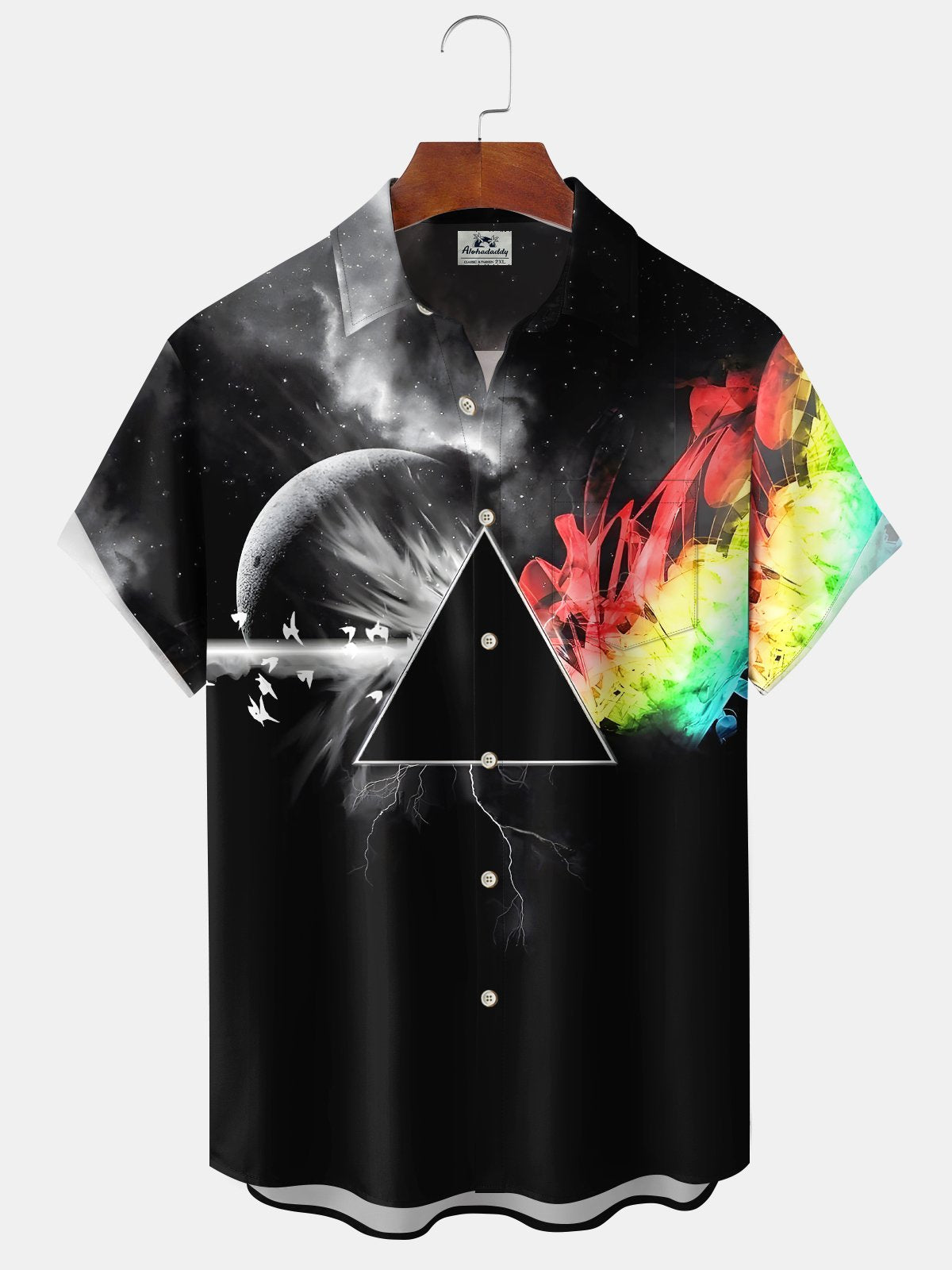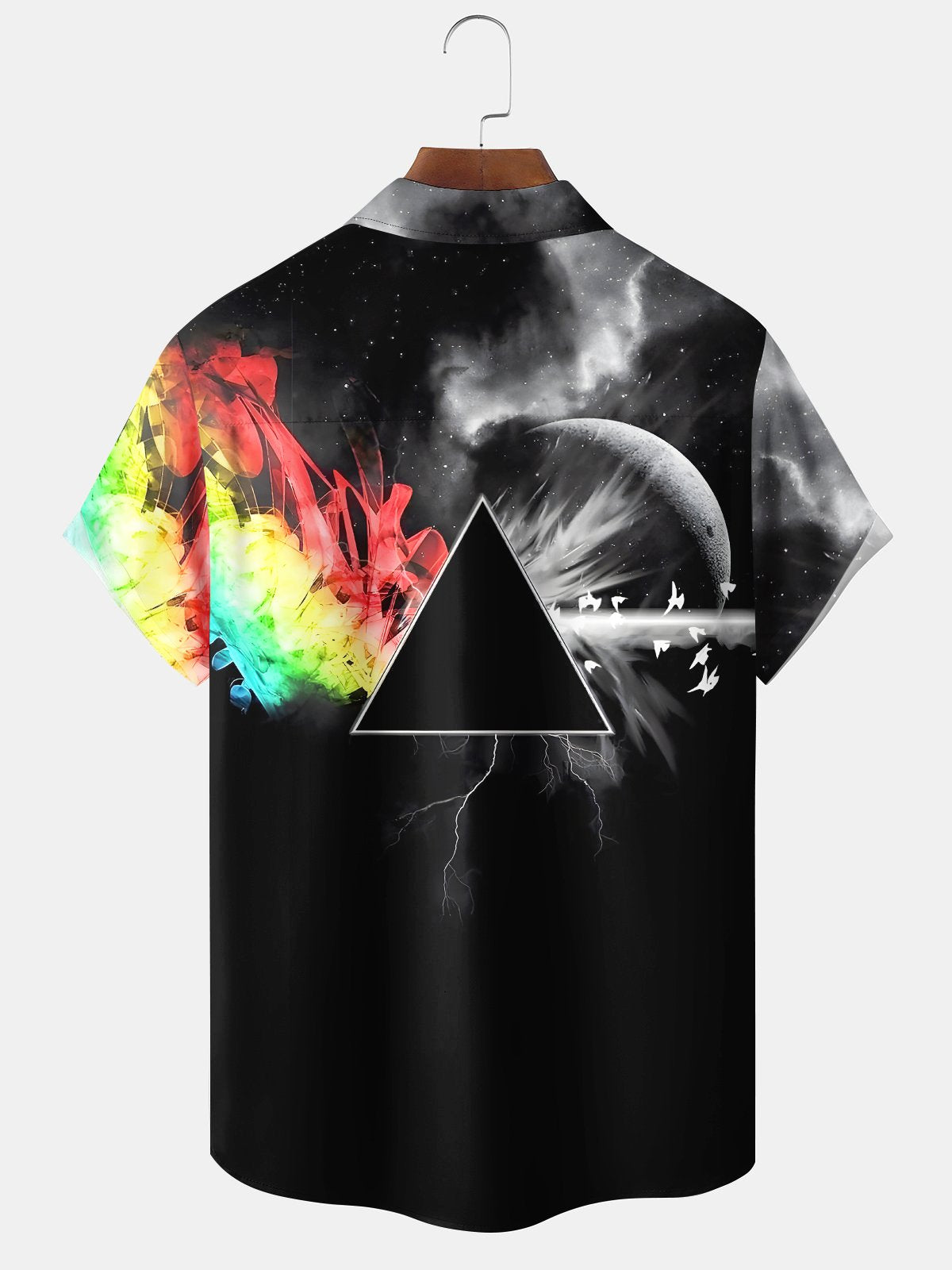 Alohadaddy Retro Music Geometric Rock Space Men's Pocket Oversized Shirt