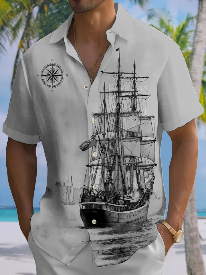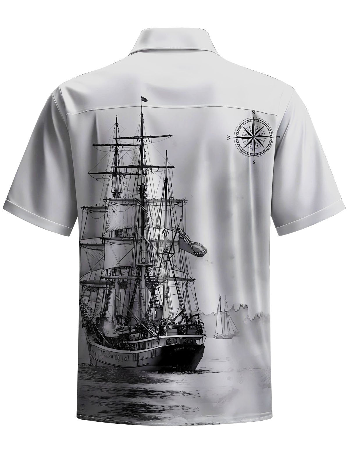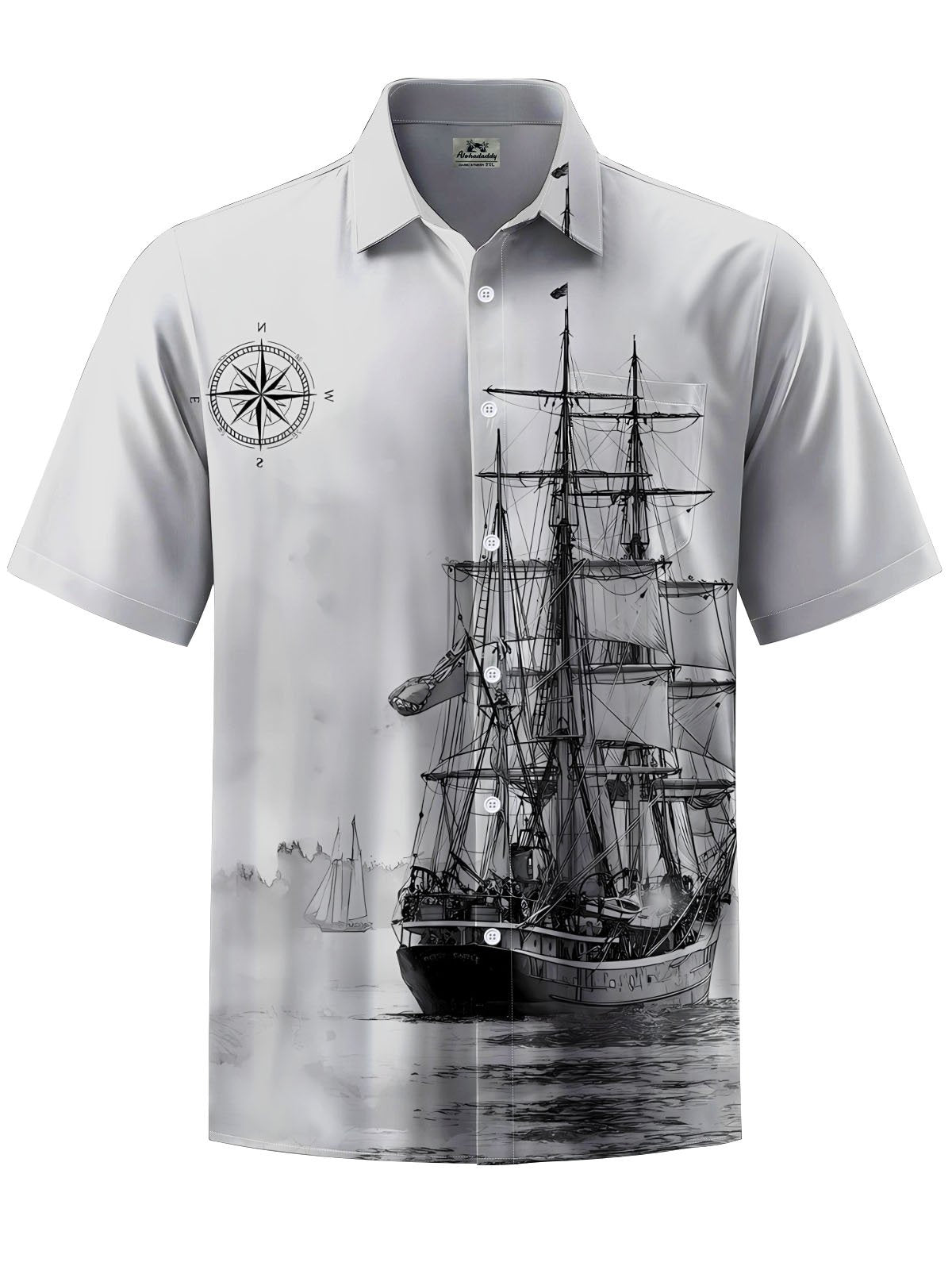 Alohadaddy® Casual Sailing Boat Art Print Chest Pocket Mens Wicking Short Sleeve Shirt Big & Tall