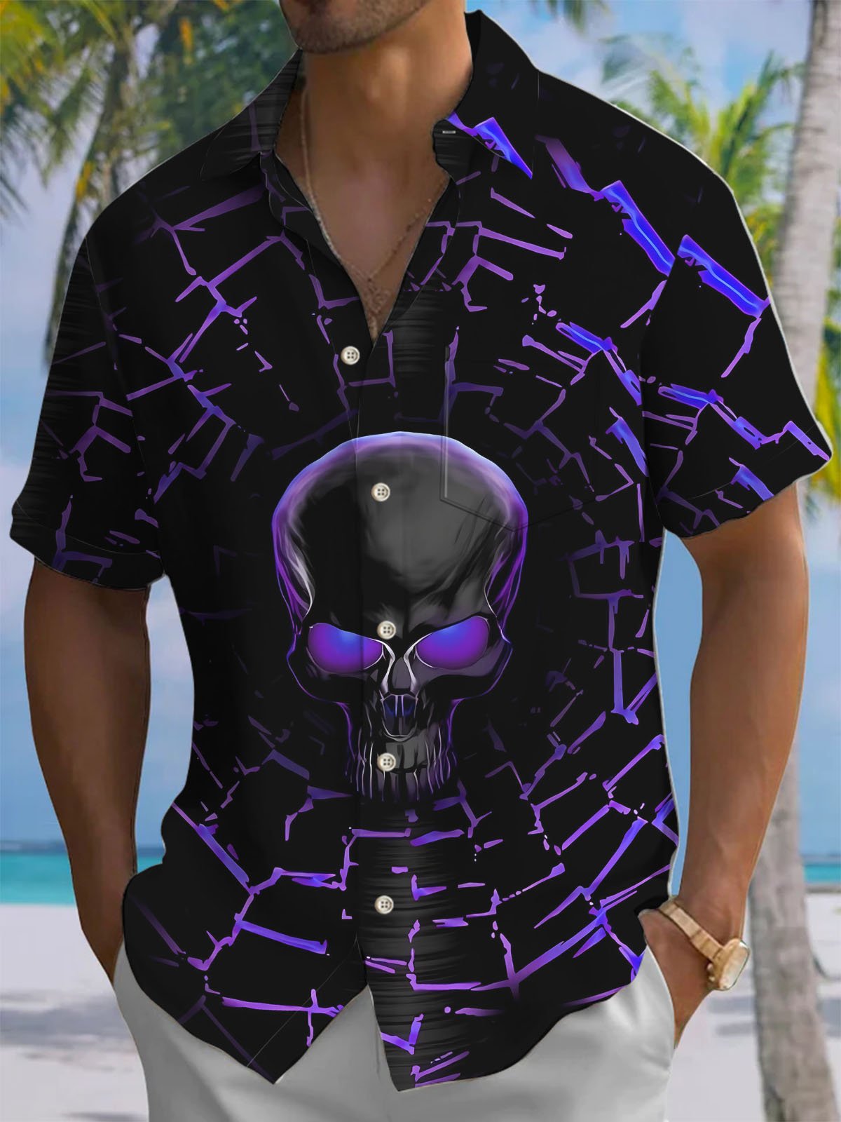 Alohadaddy® Casual Skull Art Print Chest Pocket Mens Wicking Short Sleeve Shirt Big & Tall