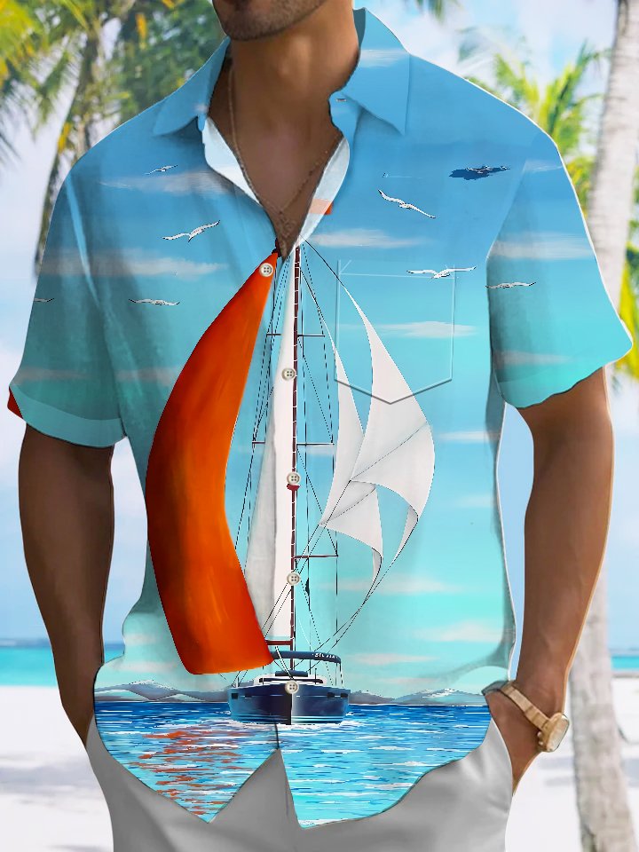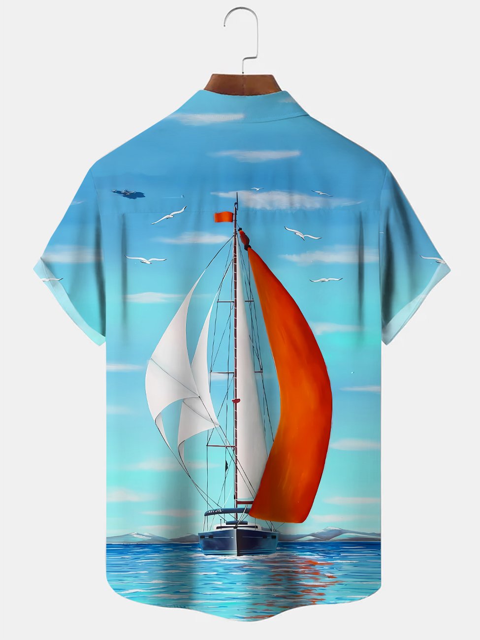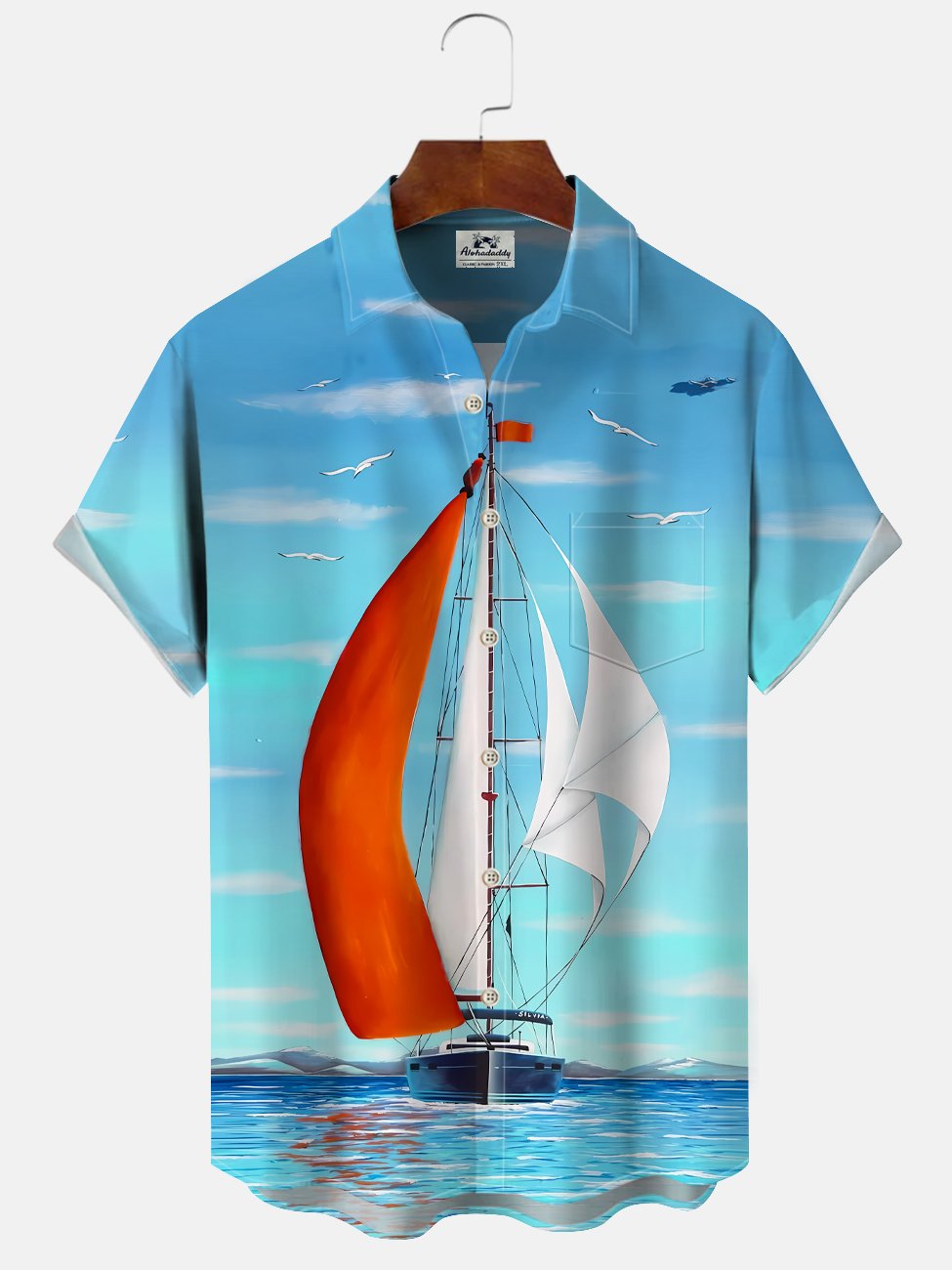 Alohadaddy Beach Sailboat Button Pocket Casual Short Sleeve Shirt
