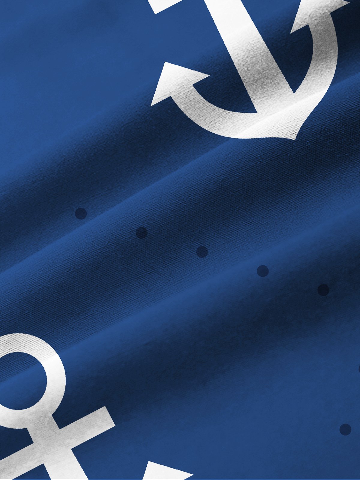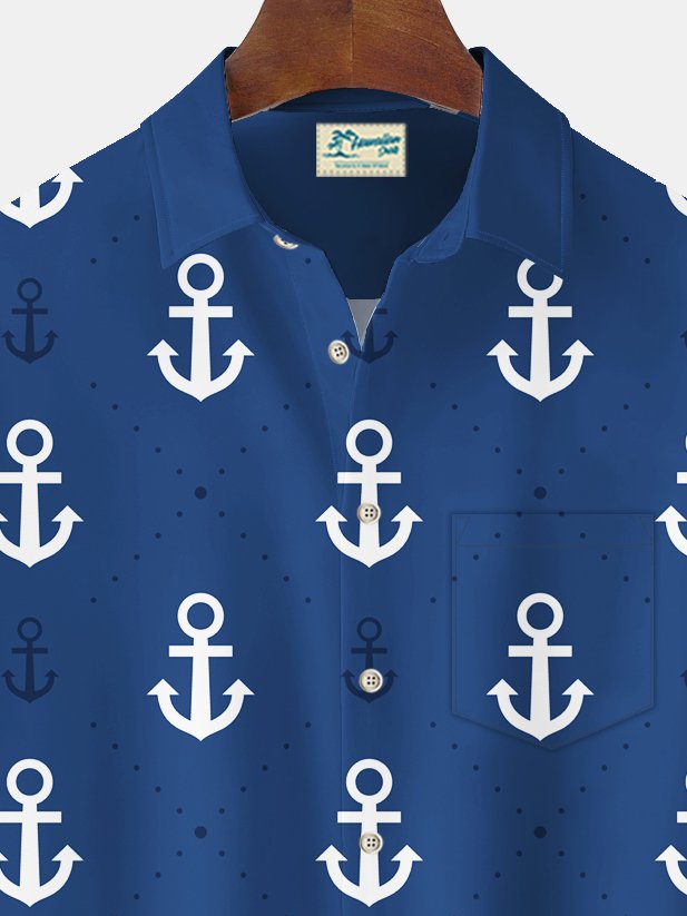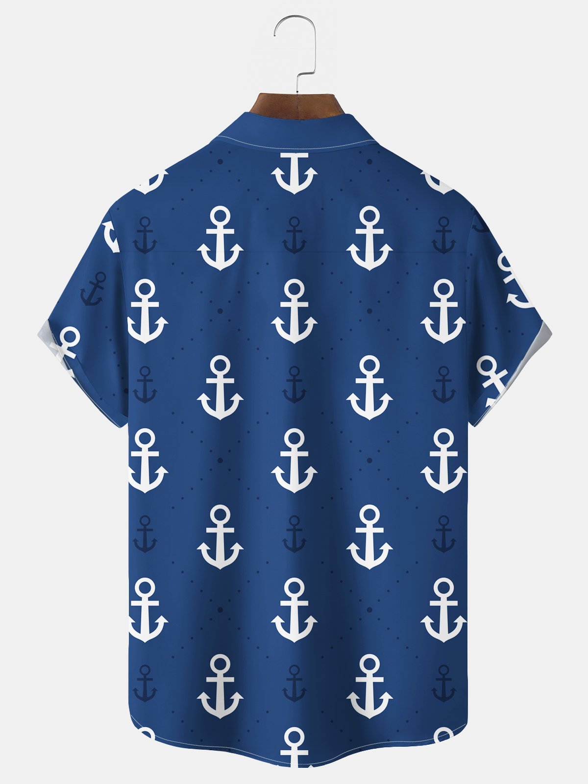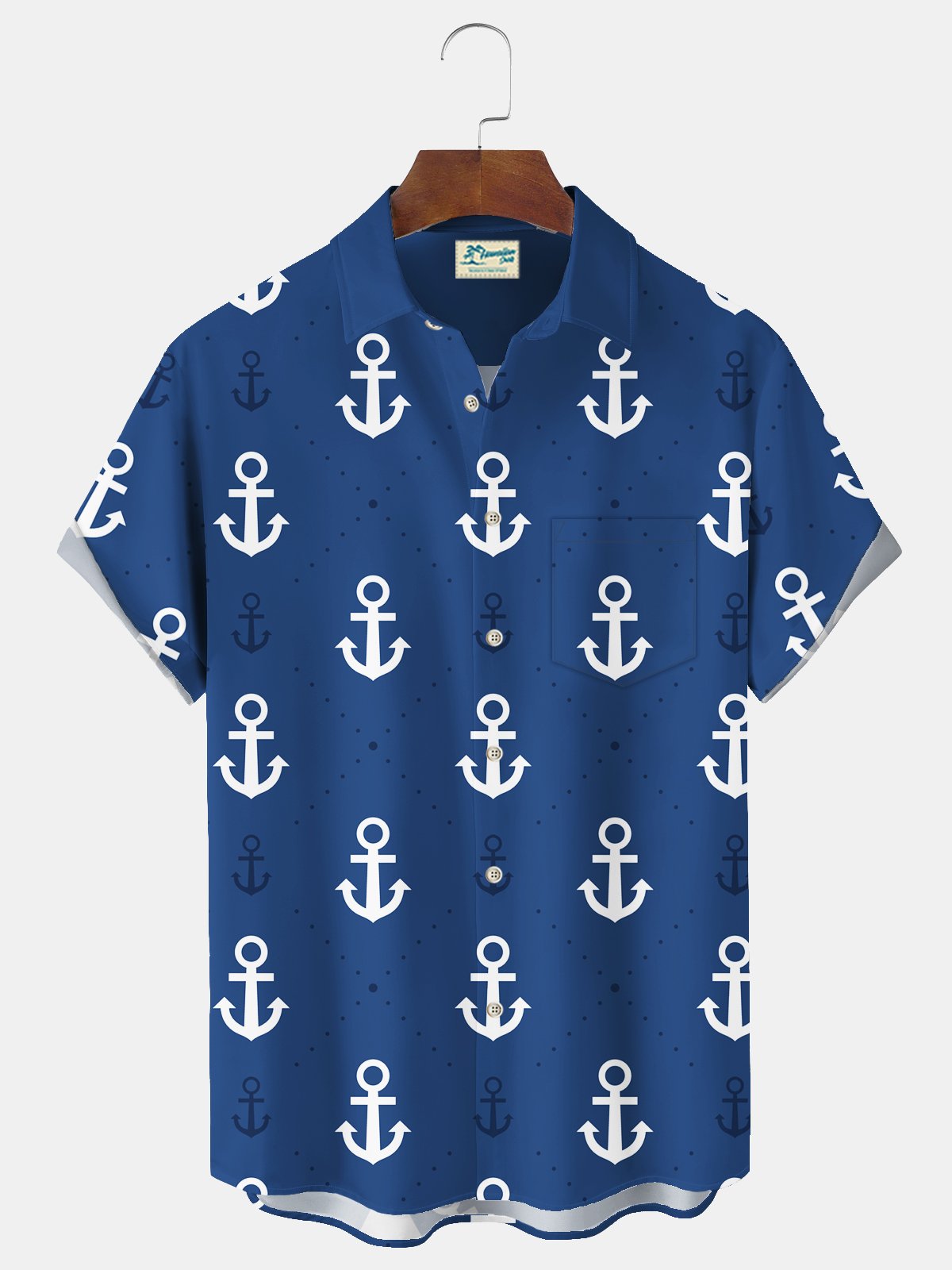 Alohadaddy Beach Vacation Men's Hawaiian Shirt Nautical Anchor Print Pocket Camping Shirt Big Tall
