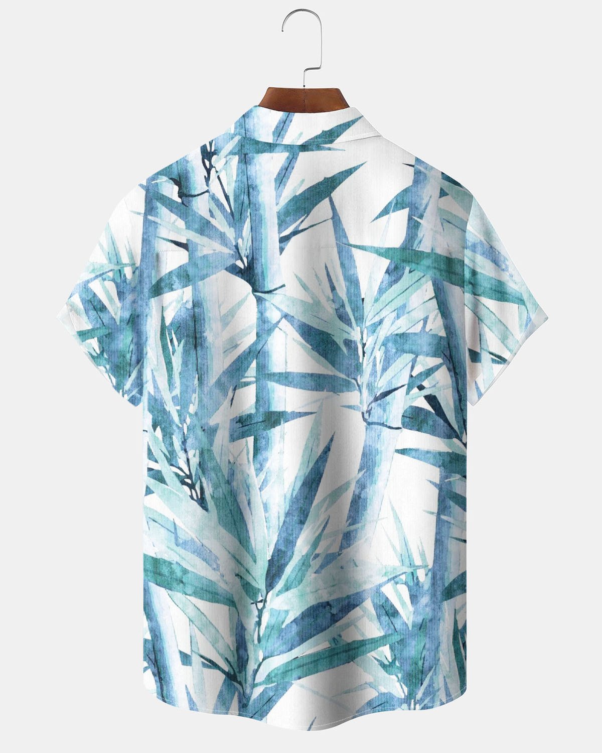 Alohadaddy® Casual Bamboo Print Artistic Button Pocket Cardigan Men's Short Sleeve Shirt Big & Tall
