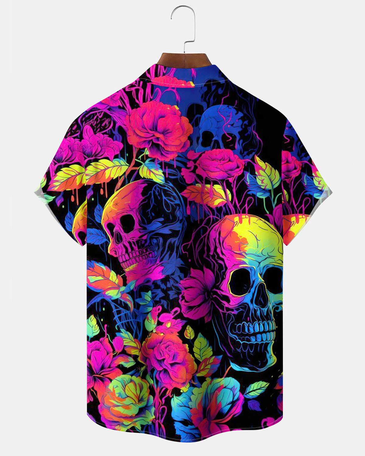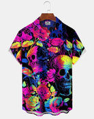 Alohadaddy® Casual Floral Skull Print Artistic Stretch Patchwork Pocket Button Men's Short-Sleeve Shirt Big & Tall