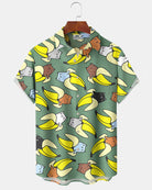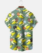 Alohadaddy® Casual Fun Cartoon Banana Cat Printed Pocket Elastic Button Men's Long Sleeve Shirt Big & Tall