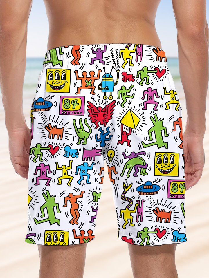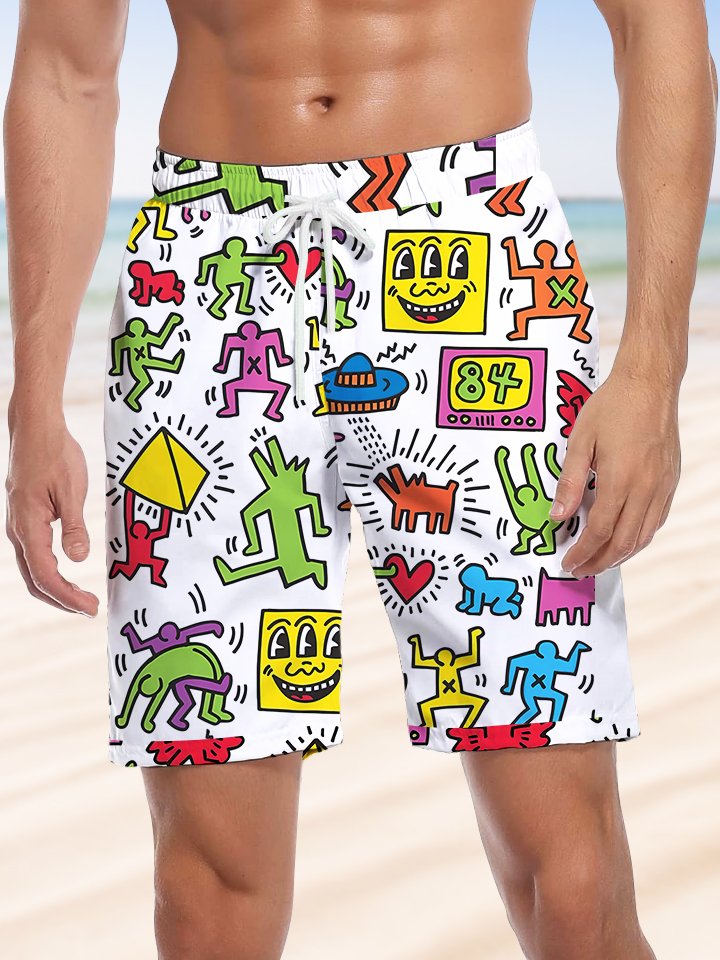 Alohadaddy® Casual Fun Geometric Print Art Drawstring Men's Beach Shorts Big & Tall