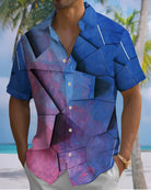 Alohadaddy® Casual Geometric Print Art Button Pocket Cardigan Men's Short Sleeve Shirt Big & Tall
