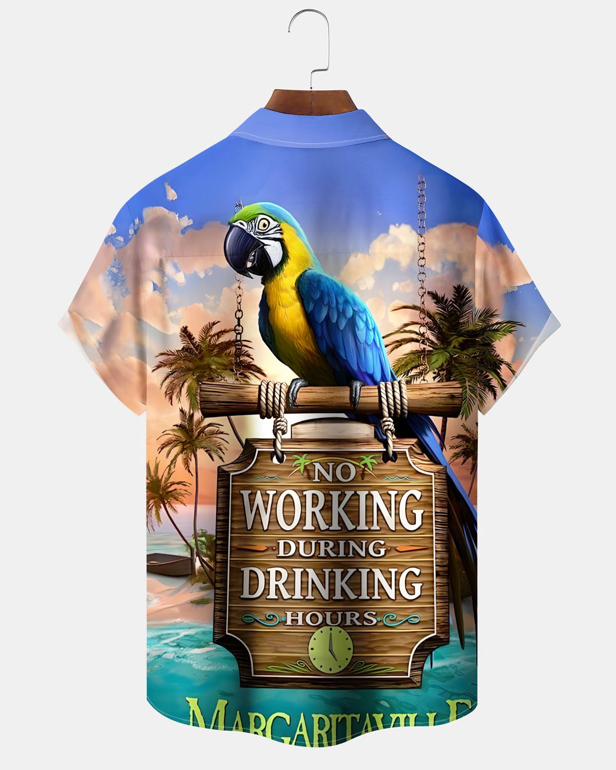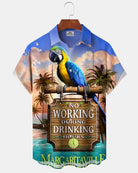Alohadaddy® Casual Parrot Beach Print Artistic Stretch Pocket Button Men's Short-Sleeve Shirt Big & Tall