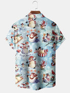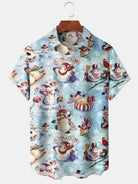 Alohadaddy® Christmas Snowman Graphic Print Men's Short-Sleeved Shirt with Pockets, Elastic Closure, and Buttons. Big & Tall