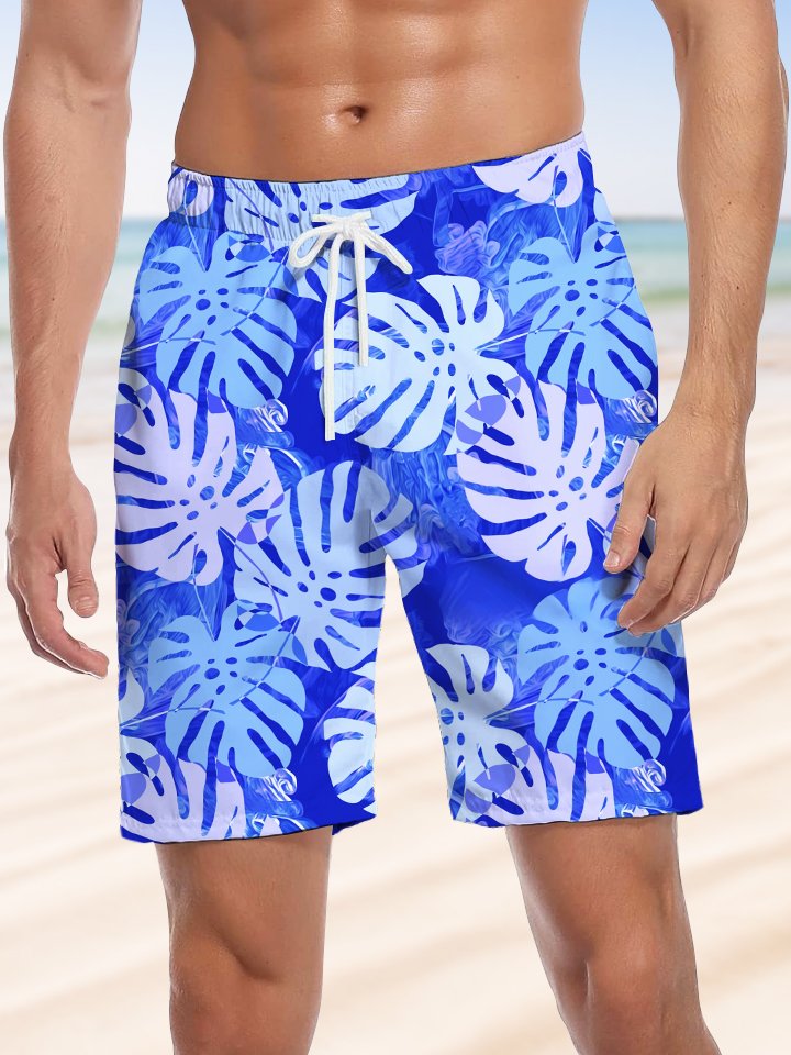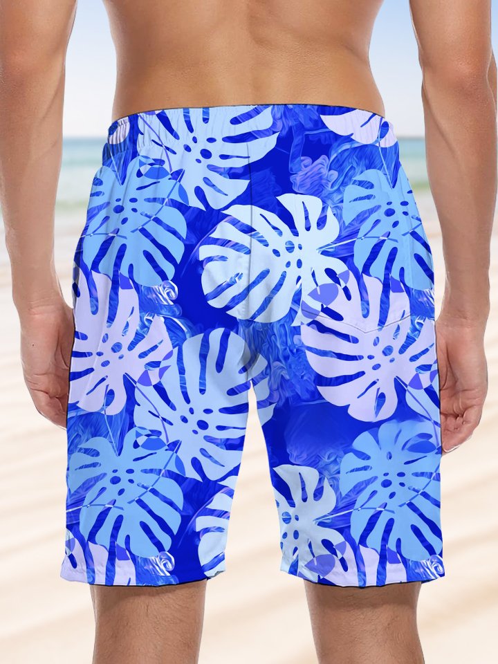Alohadaddy® Hawaii Palm Leaf Art Print Men's Beach Shorts Big & Tall