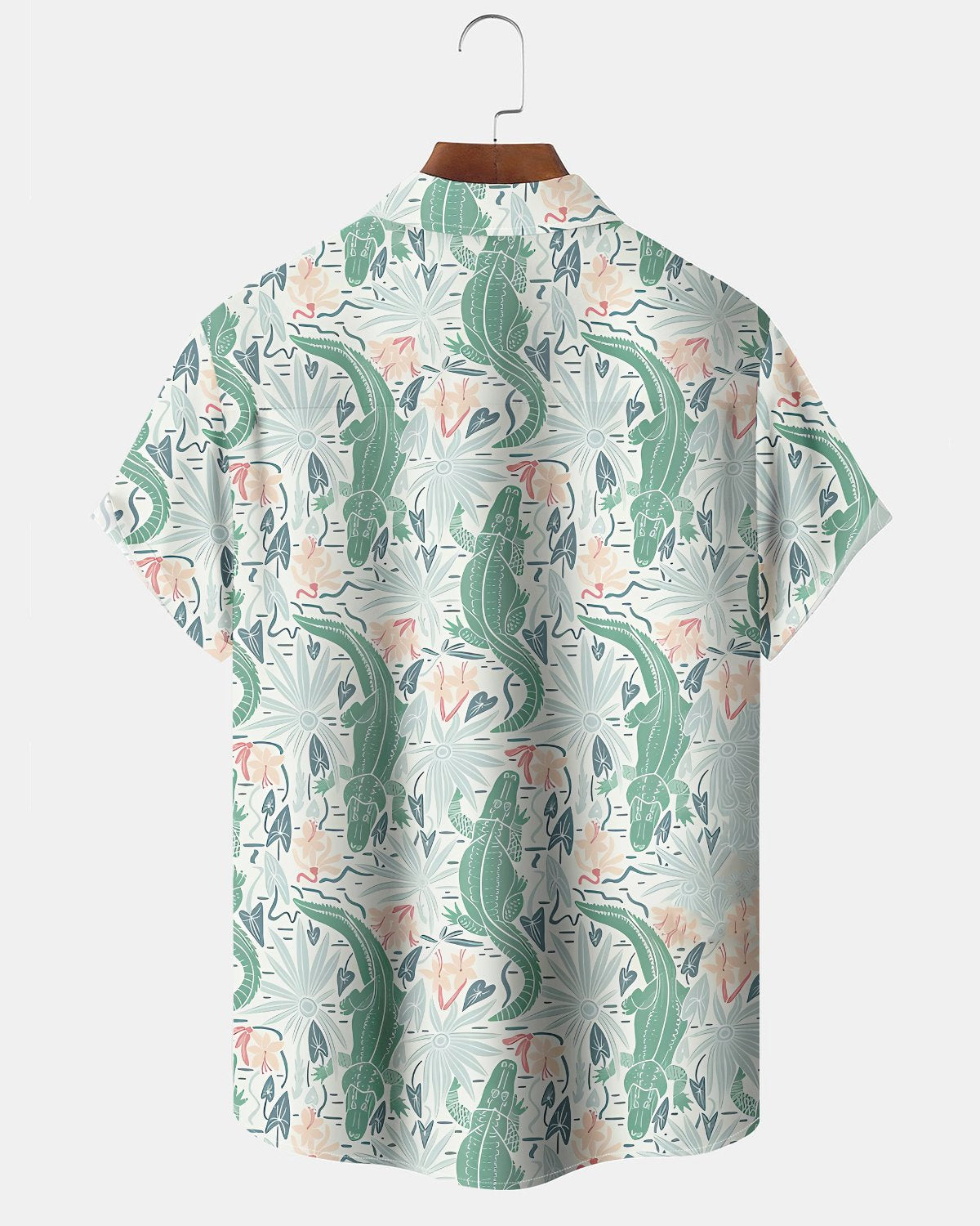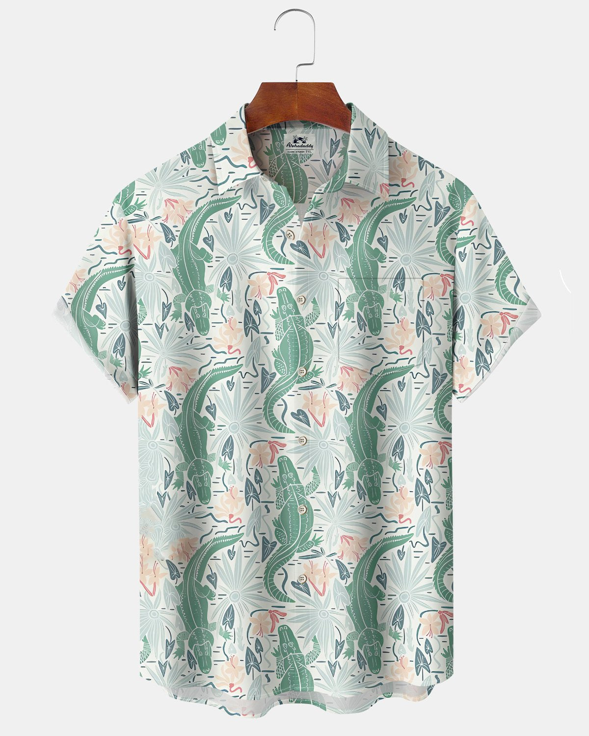 Alohadaddy® Hawaiian Alligator Print Pocket Elastic Button Closure Men's Long Sleeve Shirt Big & Tall