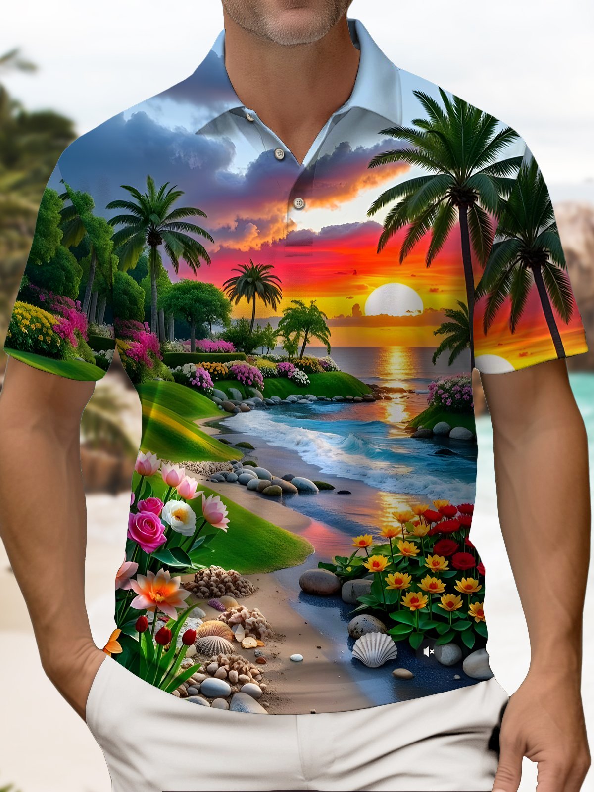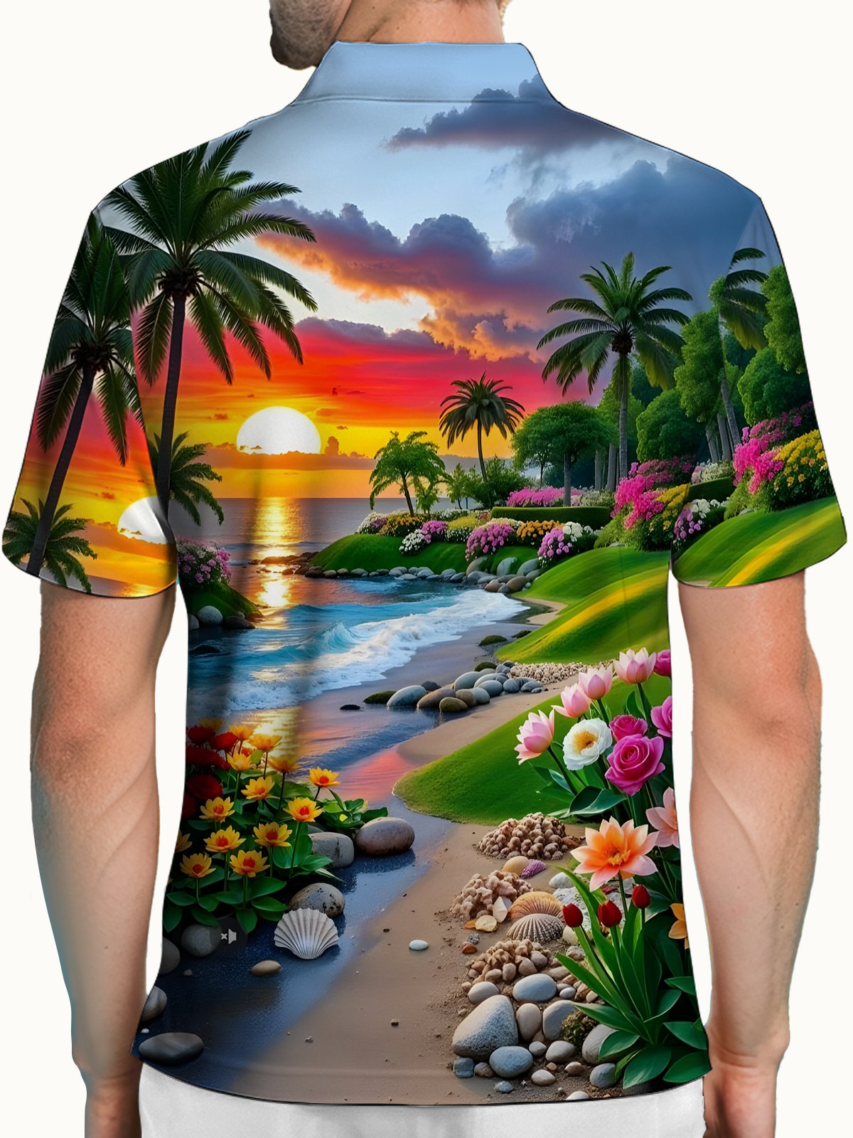 Alohadaddy® Hawaiian Beach Coconut Tree Floral Short-Sleeve Polo Shirt