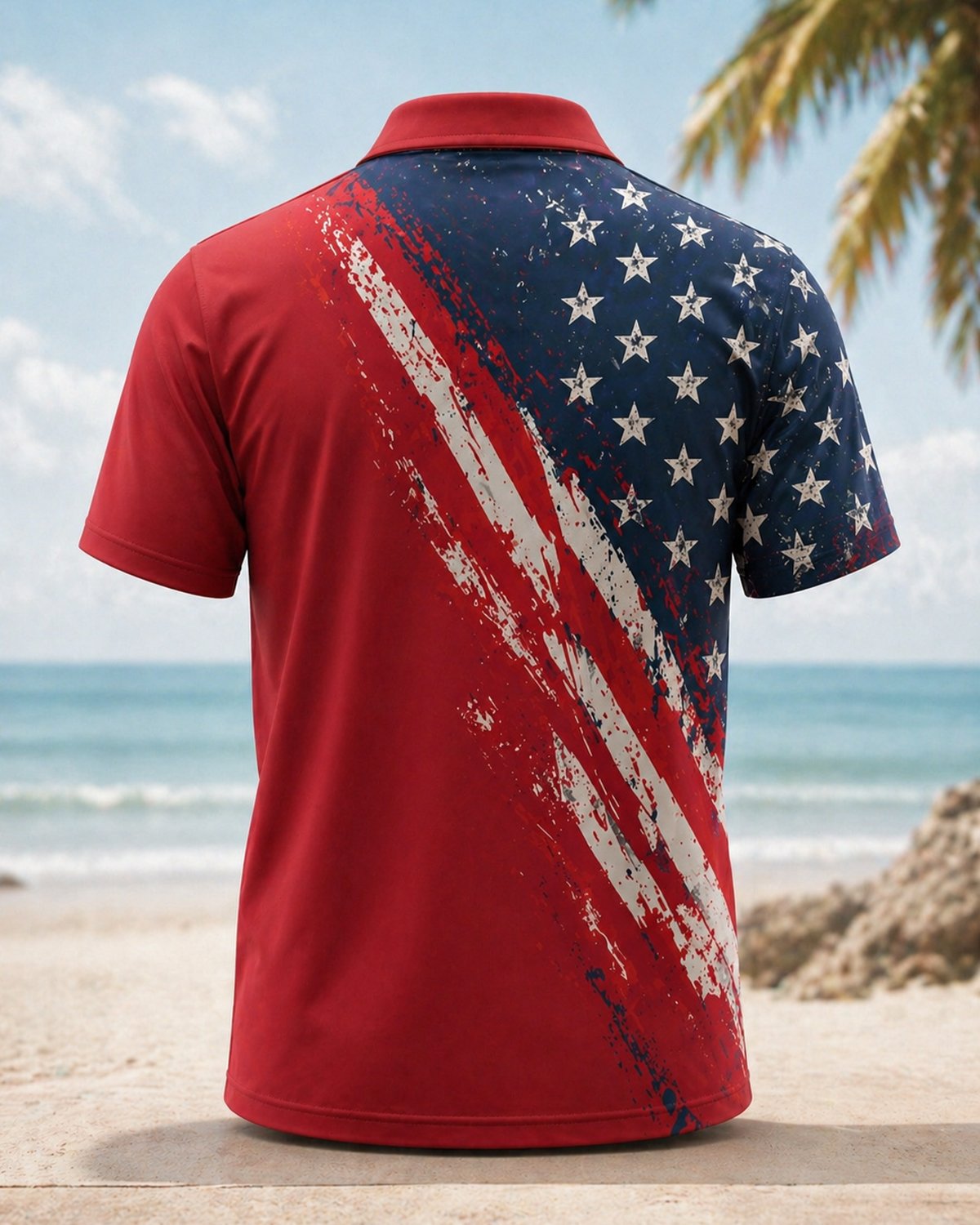 Alohadaddy® Holiday Men's Independence Day Flag Eagle Short-Sleeve Polo Shirt