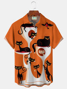 Alohadaddy® Men's Medieval Geometric Cat Print Lapel Pocket Short Sleeve Shirt Big & Tall