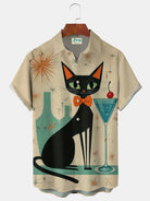 Alohadaddy® Mid-Century Cocktail and Cat Print Men's Lapel Pocket Short Sleeve Shirt Big & Tall