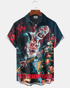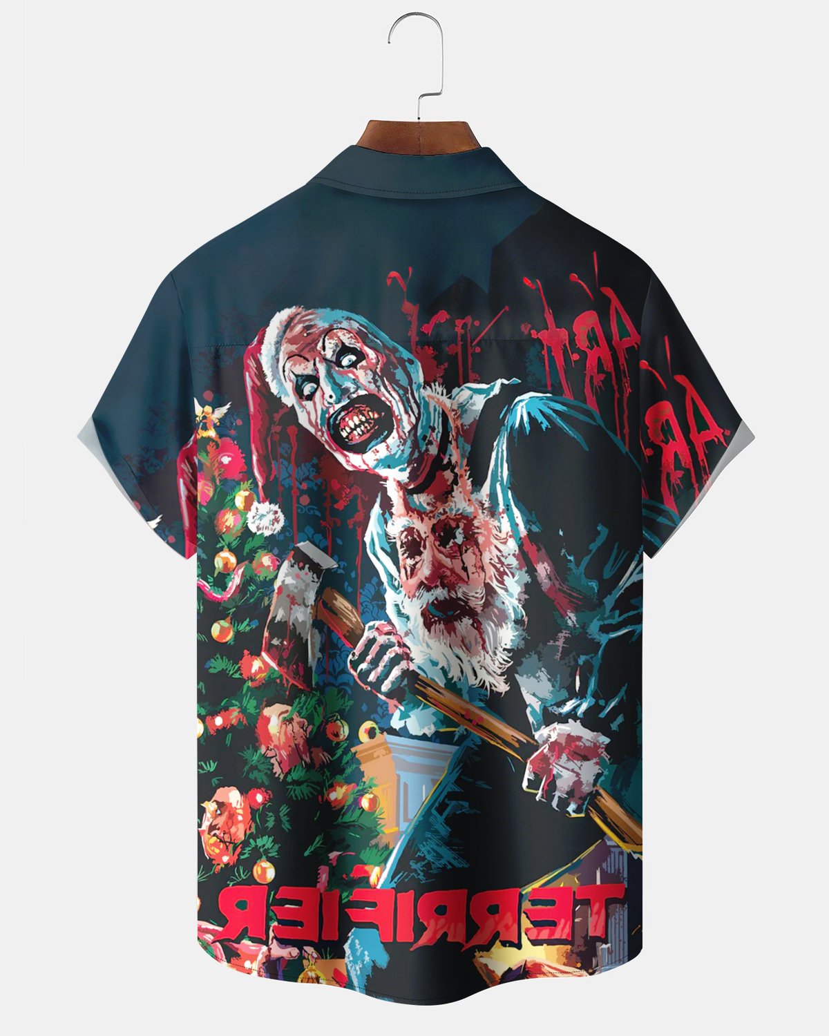 Alohadaddy® Retro Christmas Scary Santa Print Art Pocket Button Stretch Men's Short Sleeve Shirt Big & Tall