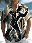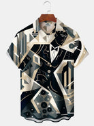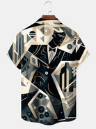 Alohadaddy® Retro Geometric Atom Print Pocket Elastic Button Men's Short Sleeve Shirt Big & Tall