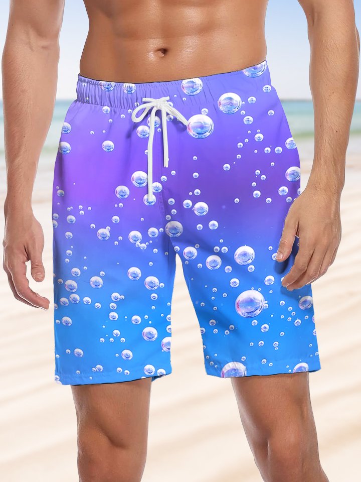Alohadaddy Gradient Bubble Print Art Moisture Wicking Large Size Casual Hawaiian Stretch Board Shorts