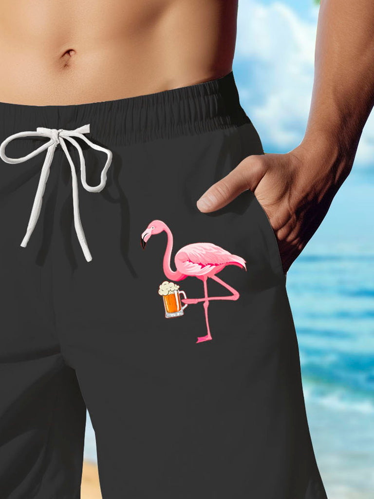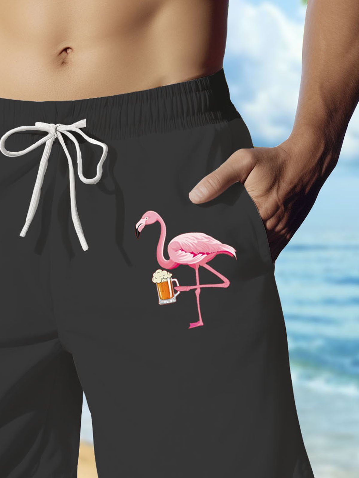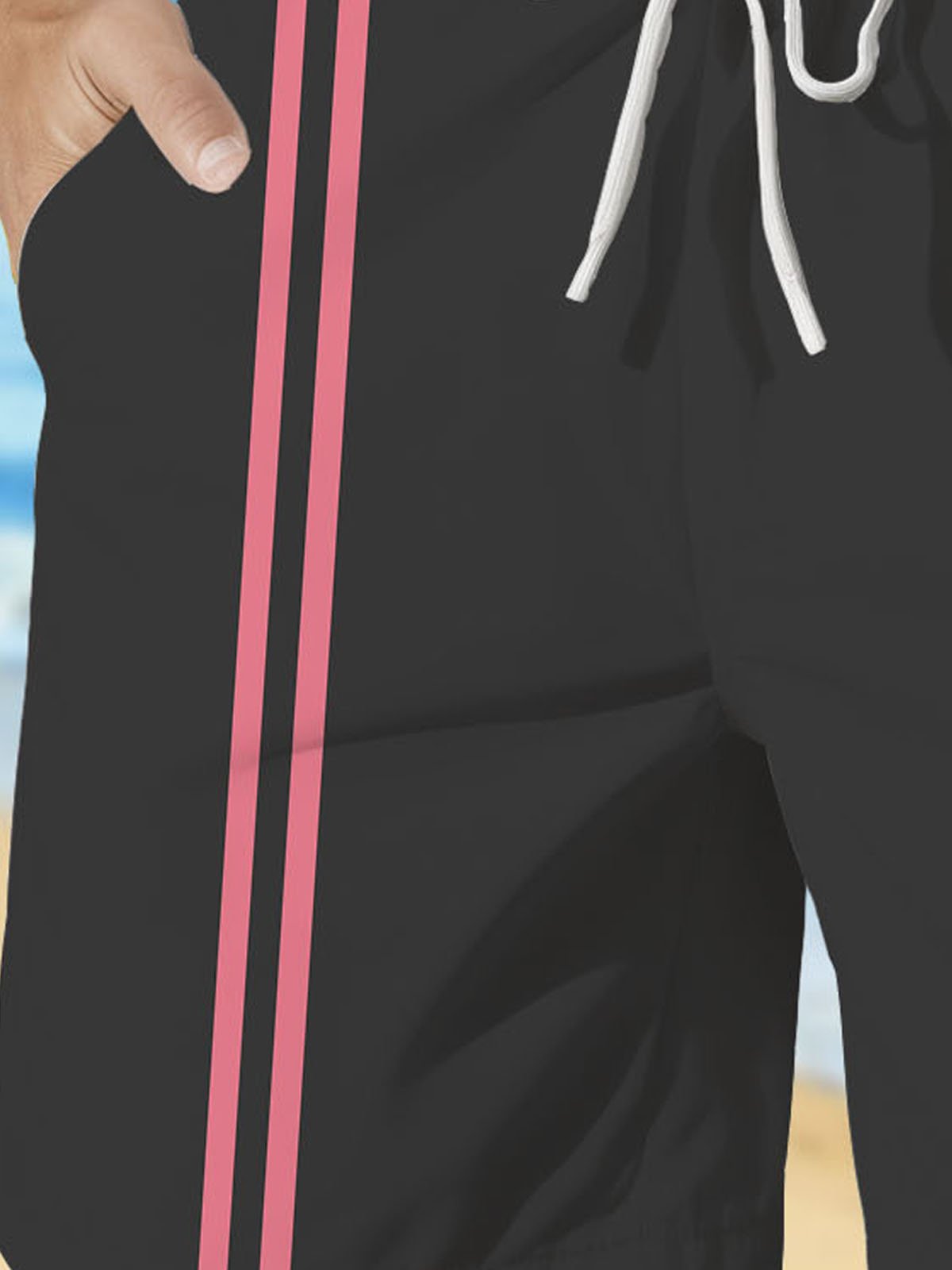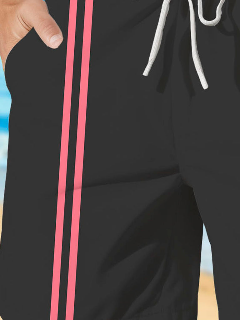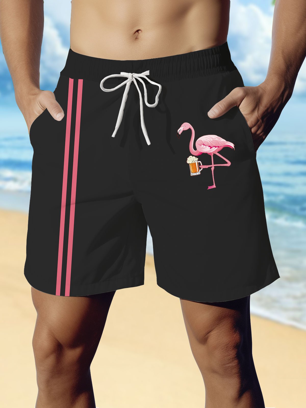 Alohadaddy Retro Flamingo Striped Print Men's Beach Shorts