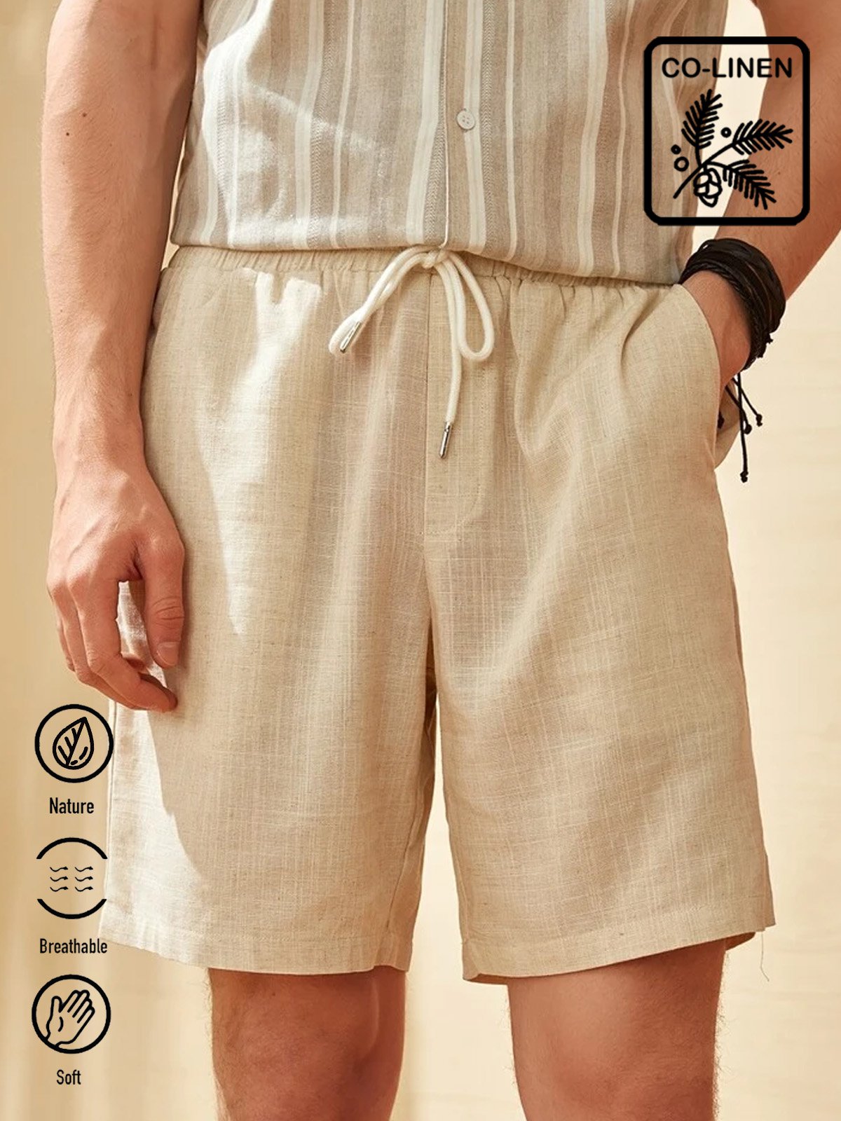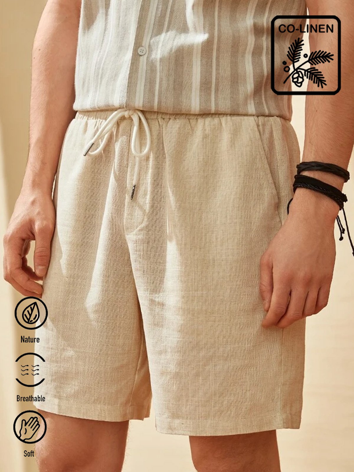 Men's Khaki Cotton Linen Casual Shorts Beach Breathable Vacation Plus Size Pants