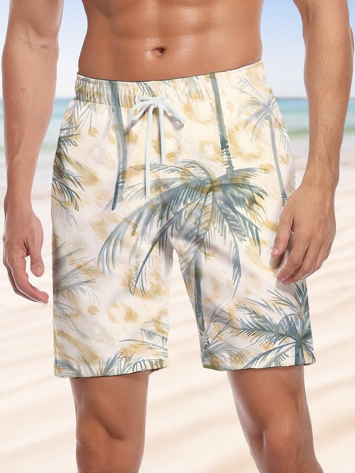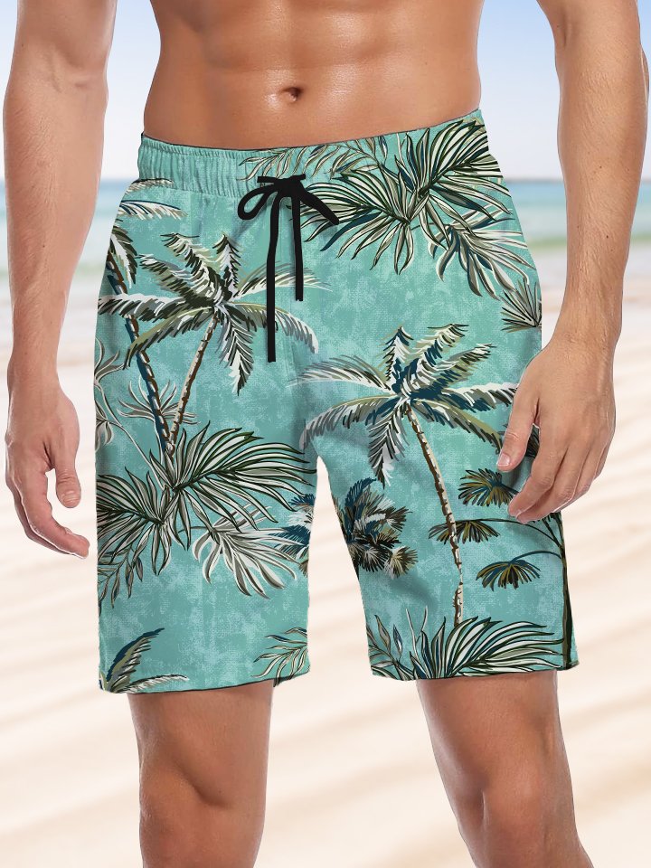 Alohadaddy® Casual Palm Trees Art Print Chest Pocket Stretch Large Size Men's Hawaiian Short Sleeve Shirt