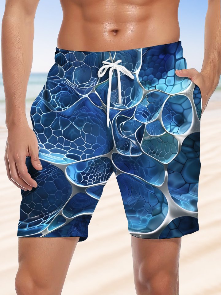 Alohadaddy® Casual Abstract Blue Printed Button Pocket Stretch Men's Short Sleeve Shirt Big & Tall