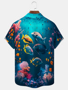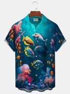 Alohadaddy Marine Life Fish Print Men's Button Pocket Shirt