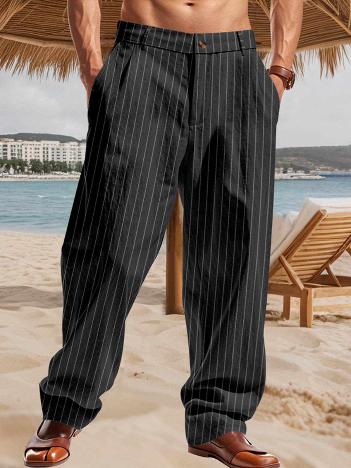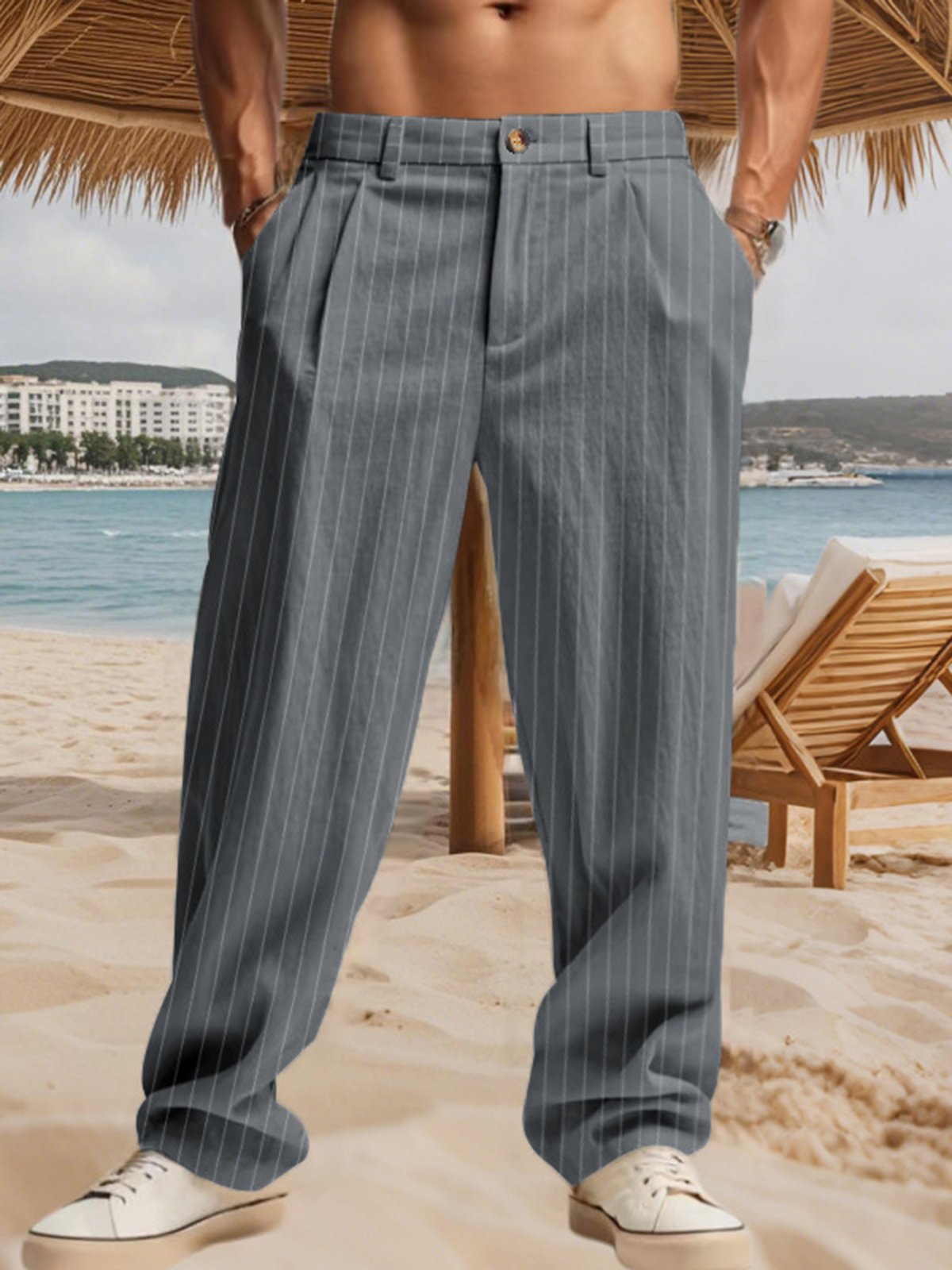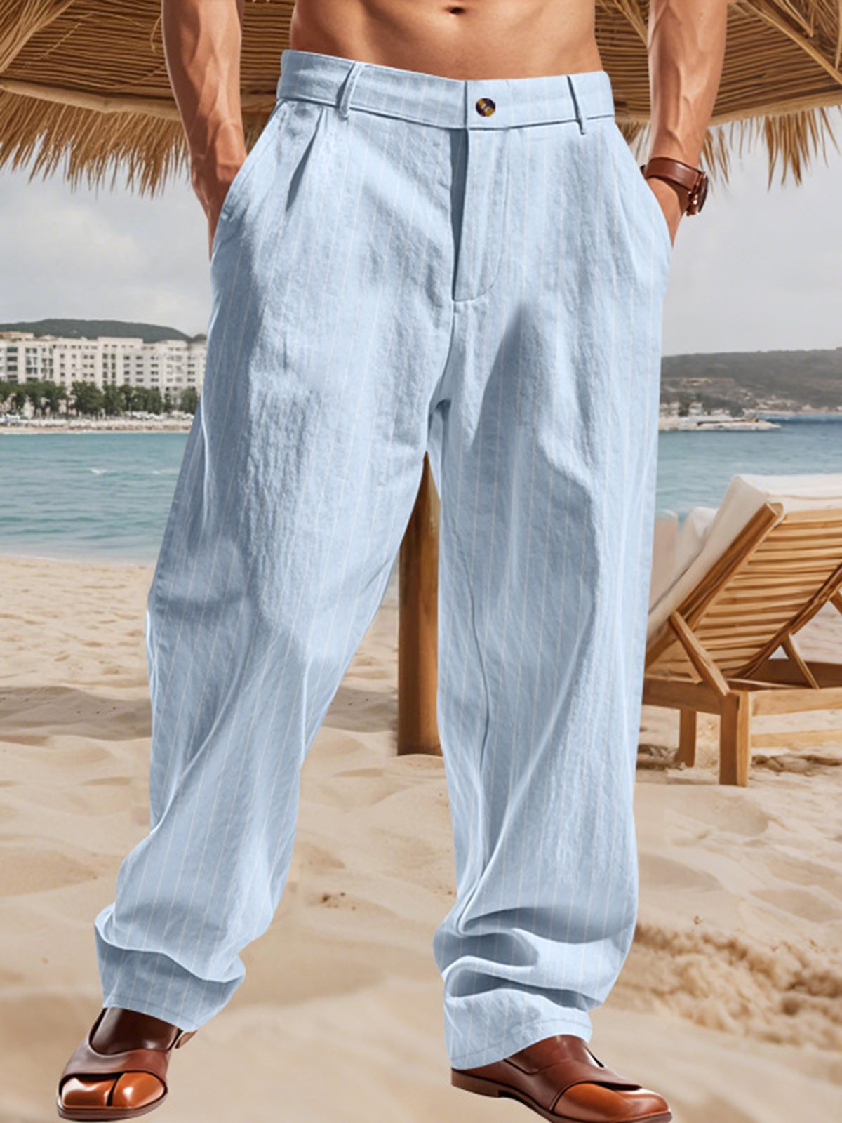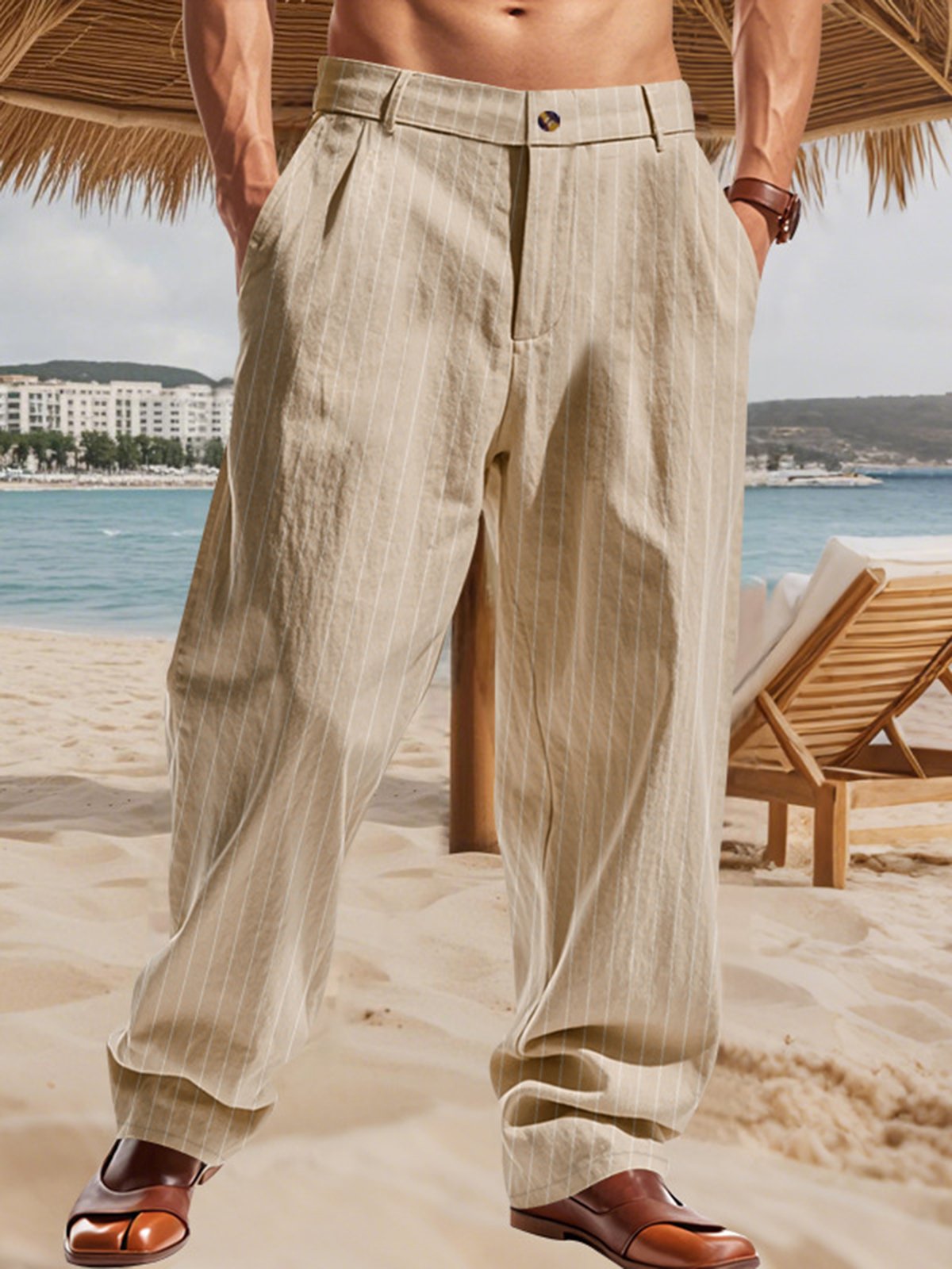 Alohadaddy® Linen Men's Casual Pants Summer Thin Striped Zipper Straight Men's Suit Pants