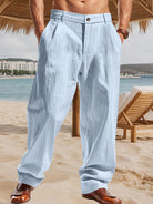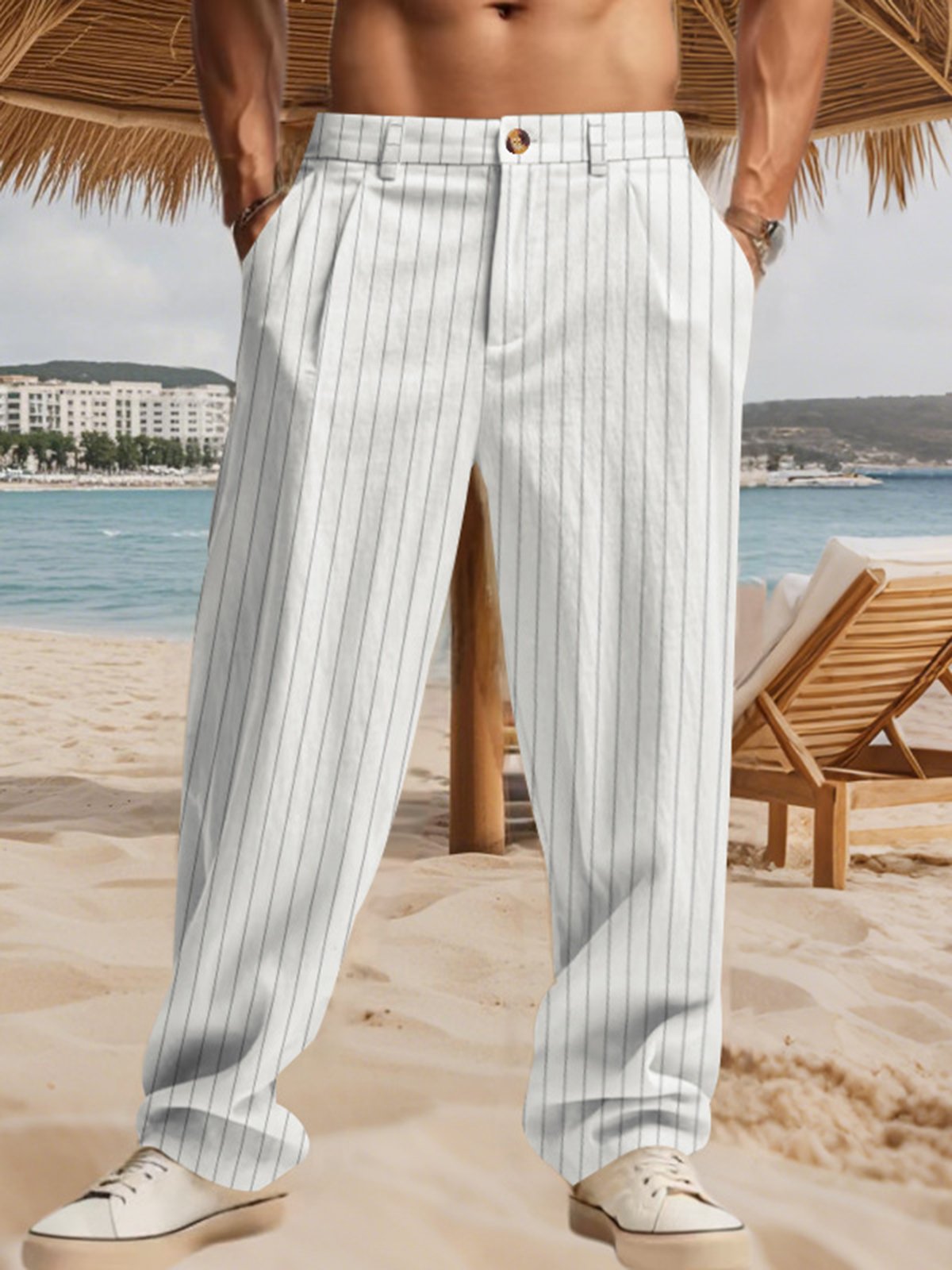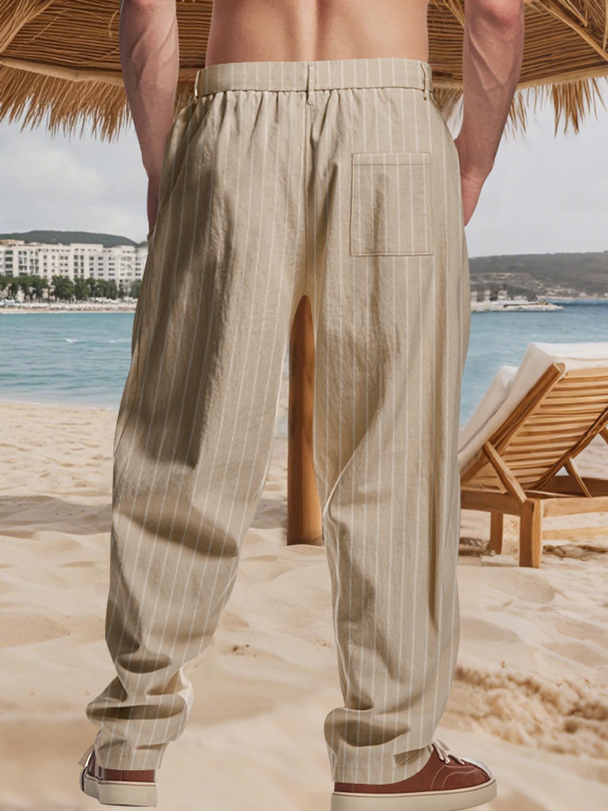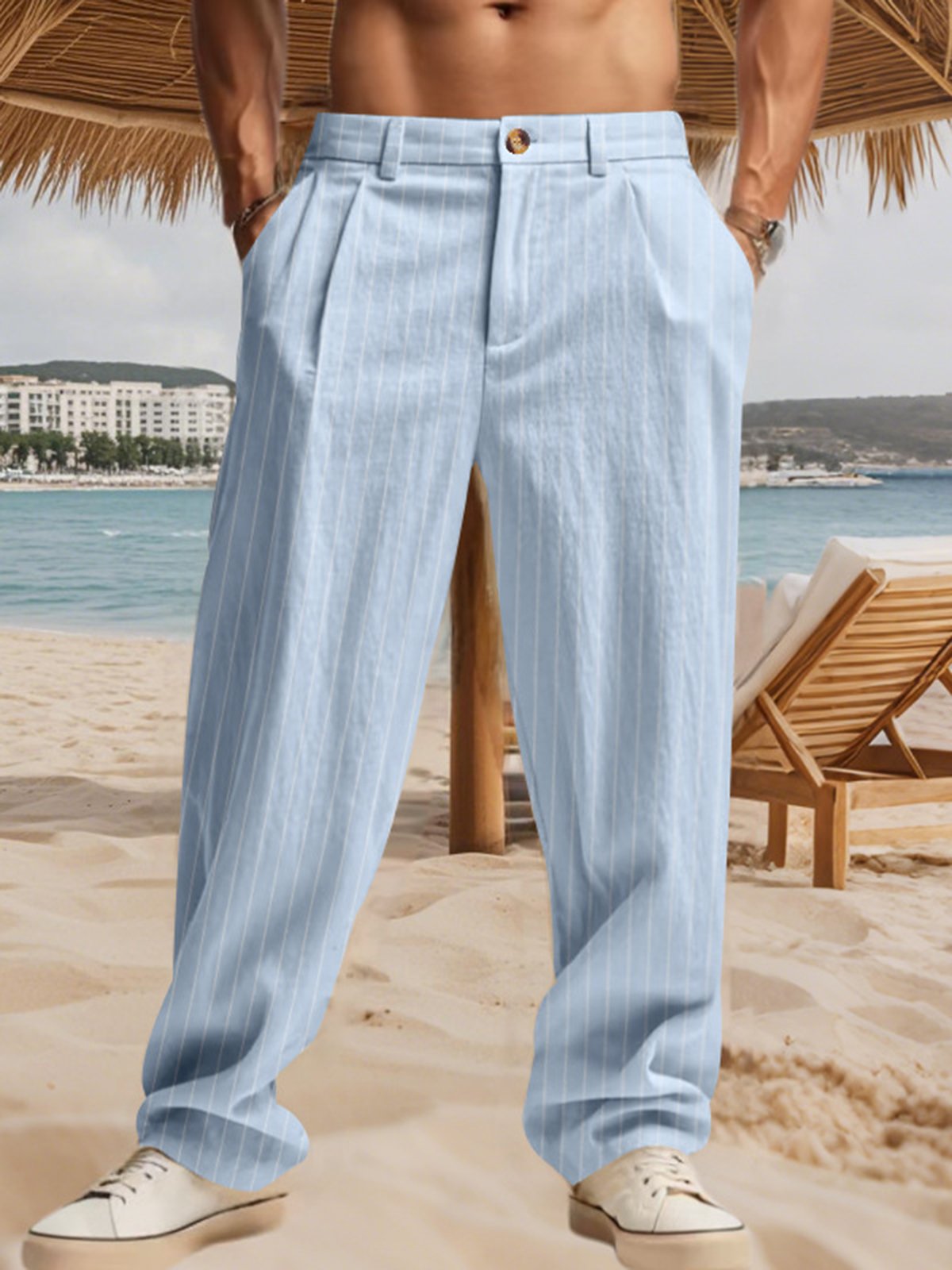 Alohadaddy® Linen Men's Casual Pants Summer Thin Striped Zipper Straight Men's Suit Pants