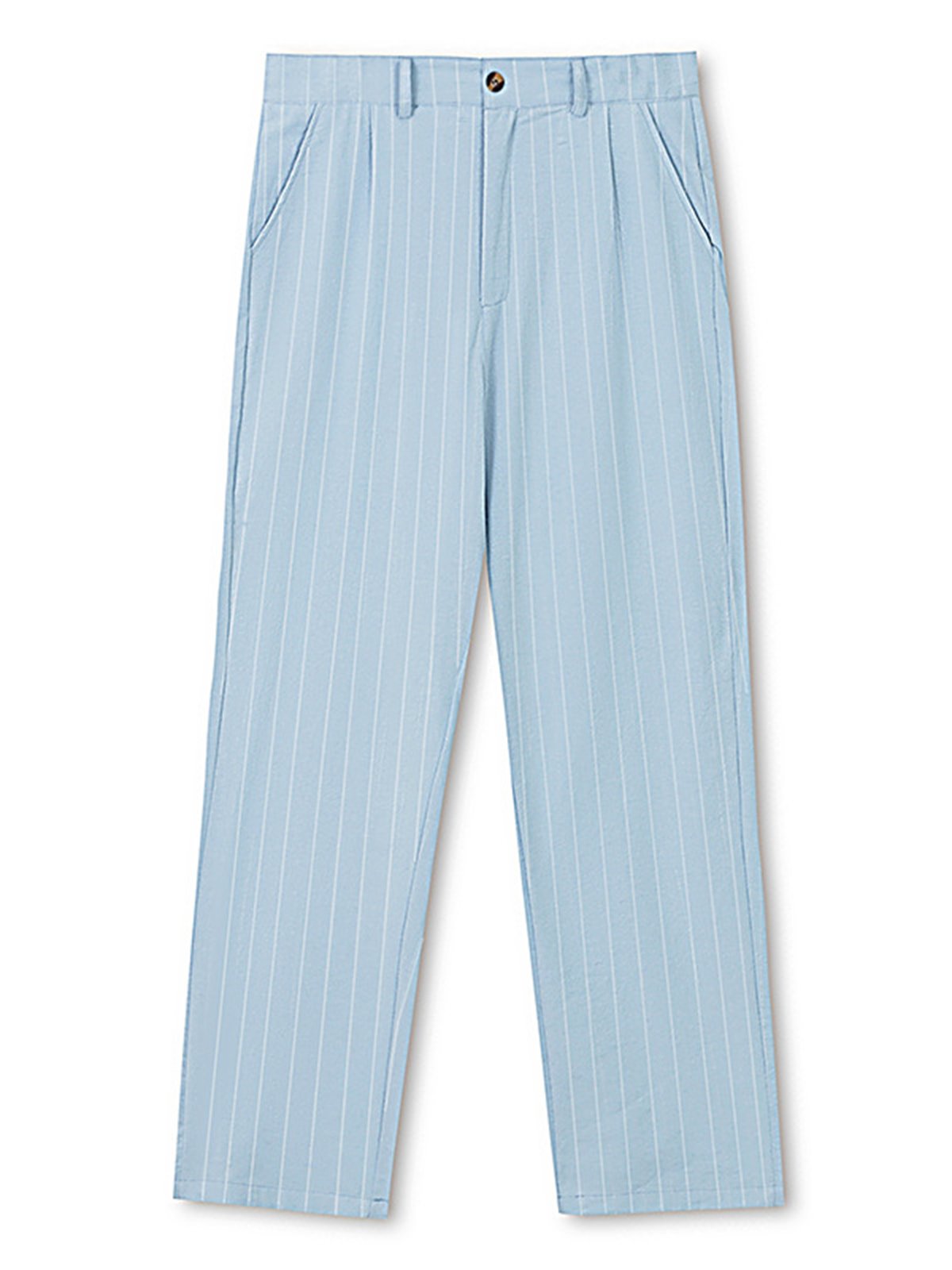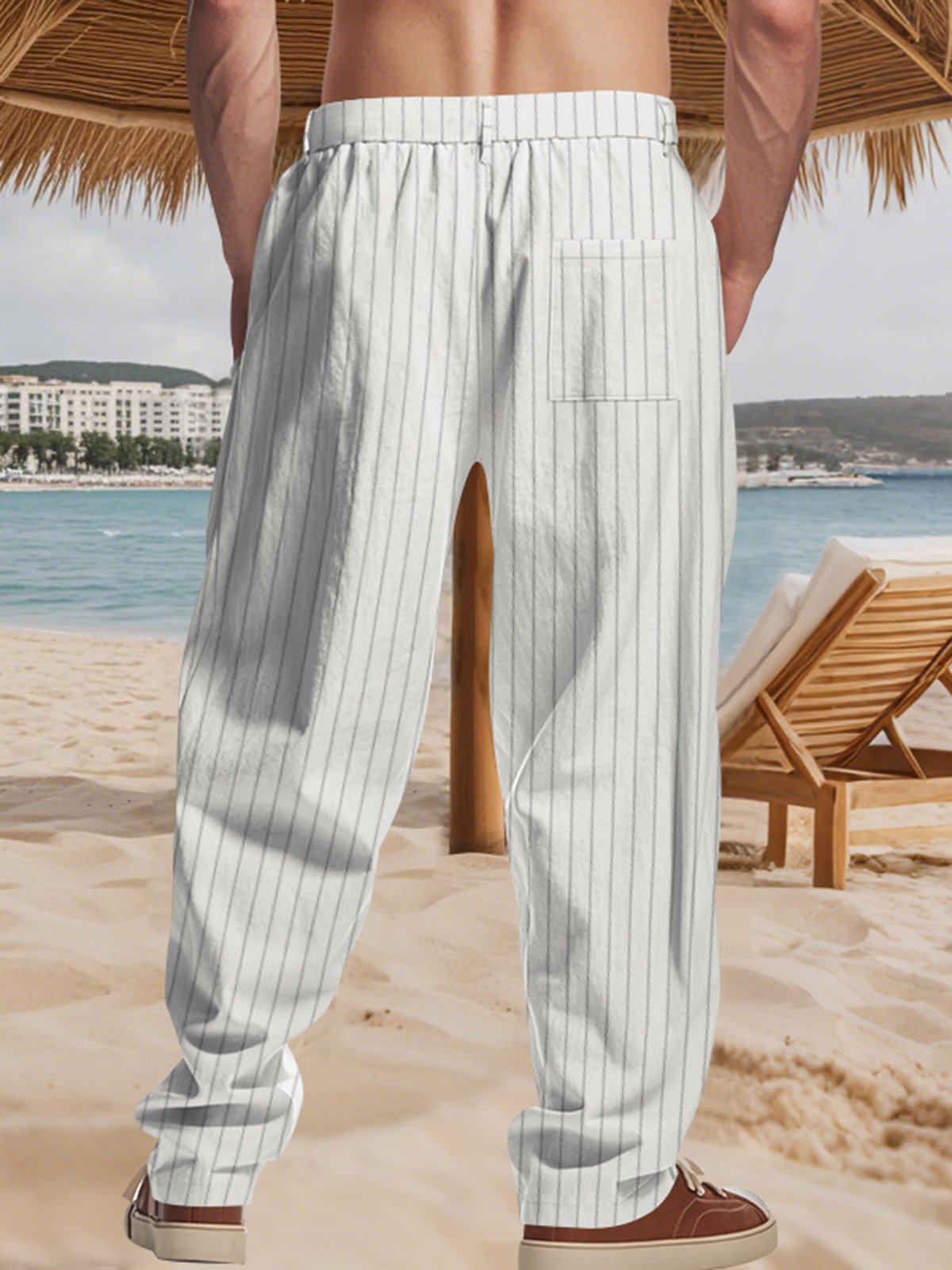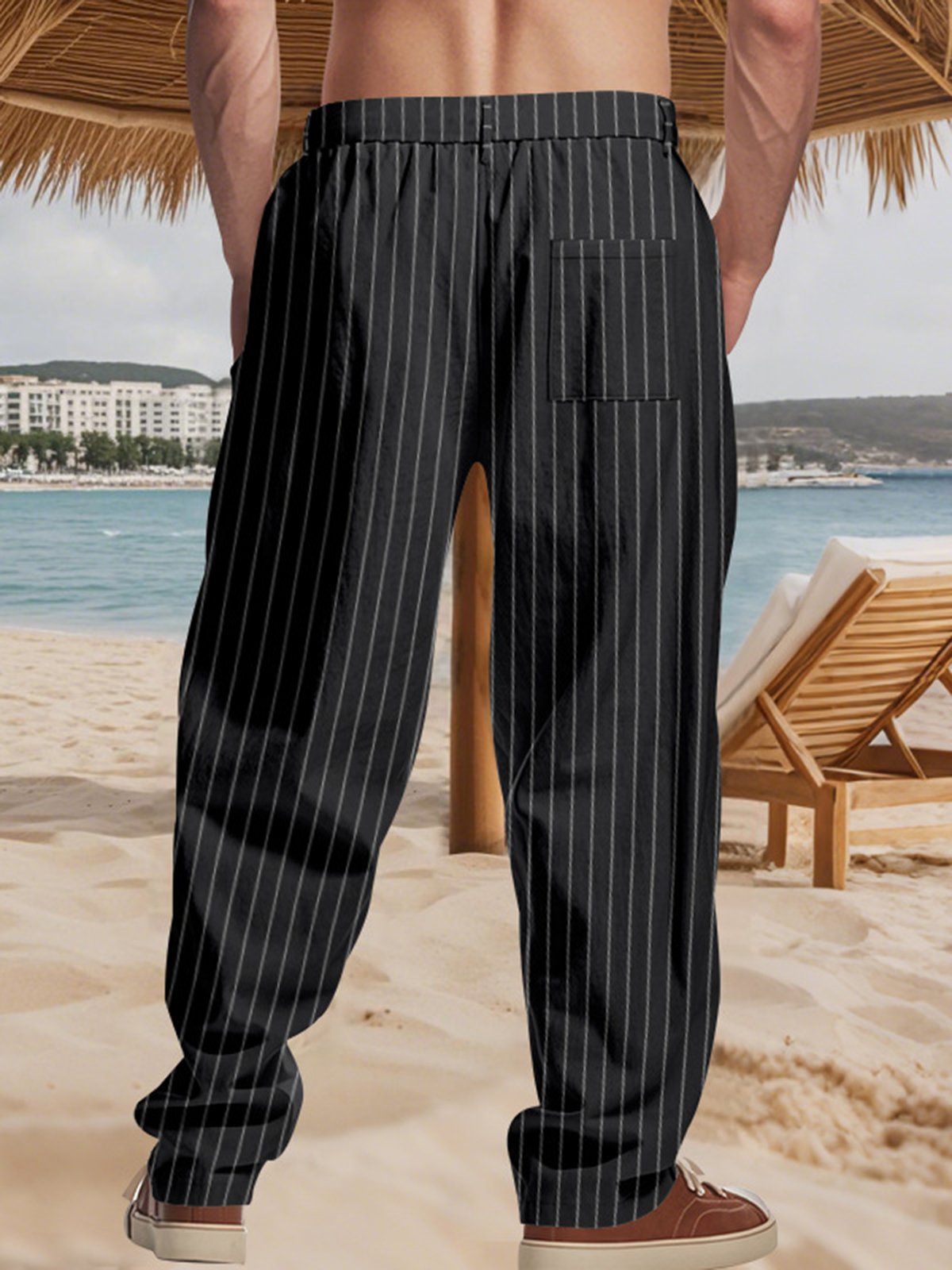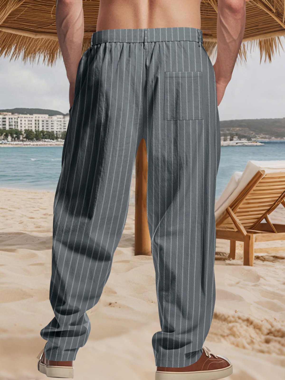 Alohadaddy® Linen Men's Casual Pants Summer Thin Striped Zipper Straight Men's Suit Pants