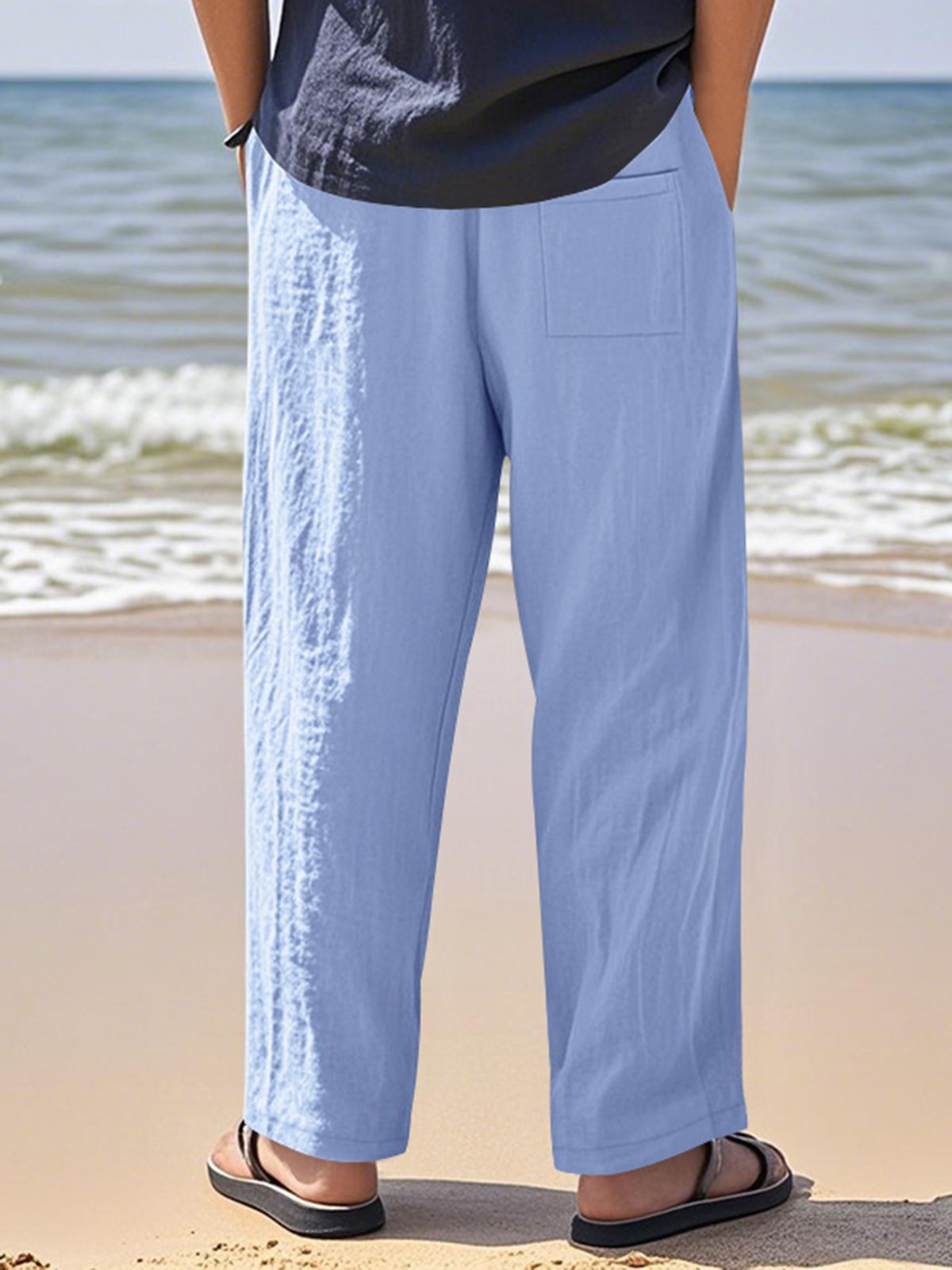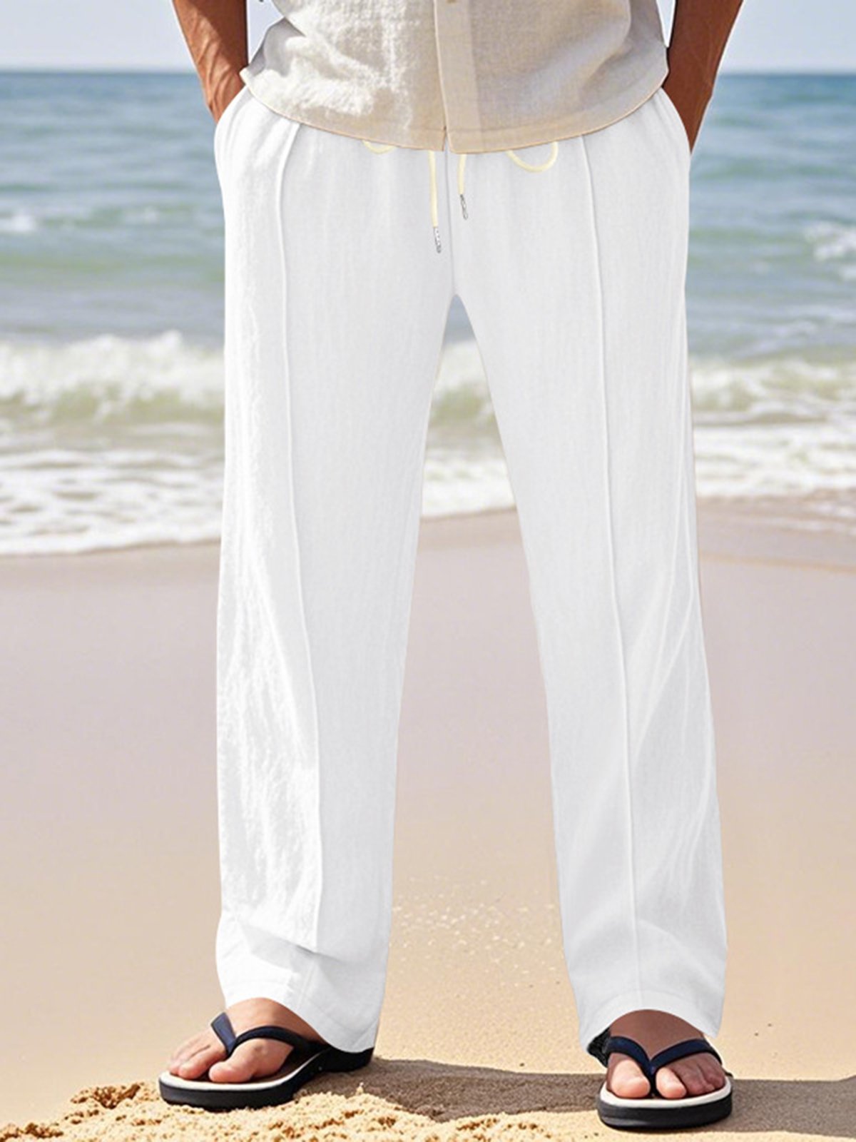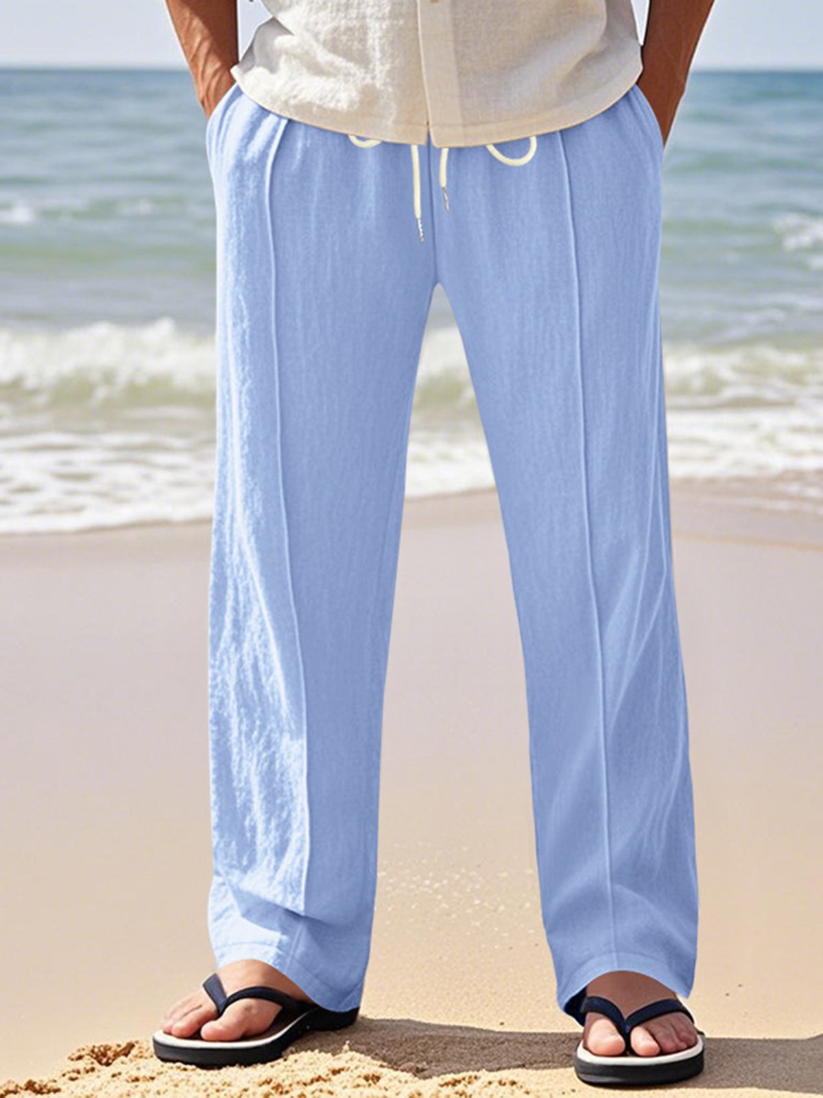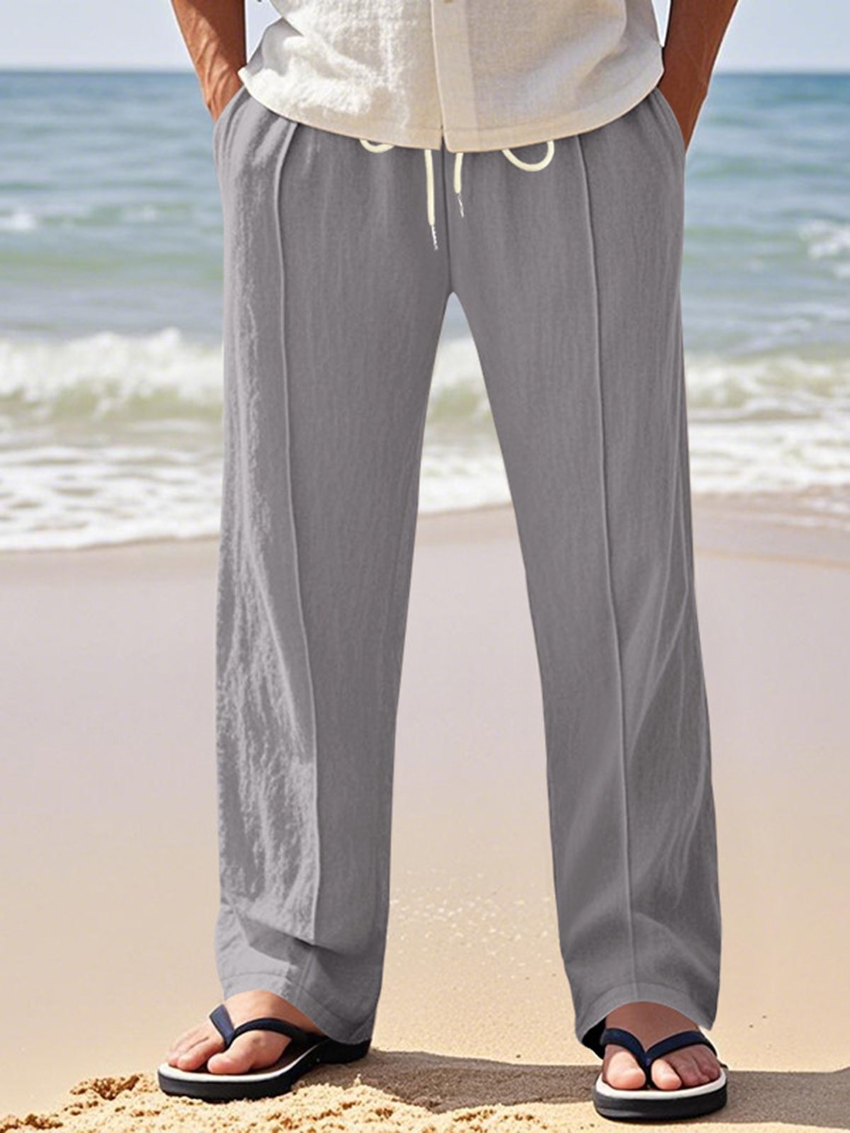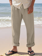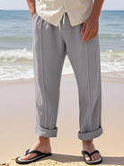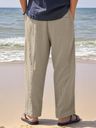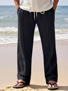 Alohadaddy® Linen Summer Pants Men's Thin Sports Loose Drawstring Wide Leg Straight Men's Casual Pants Big & Tall