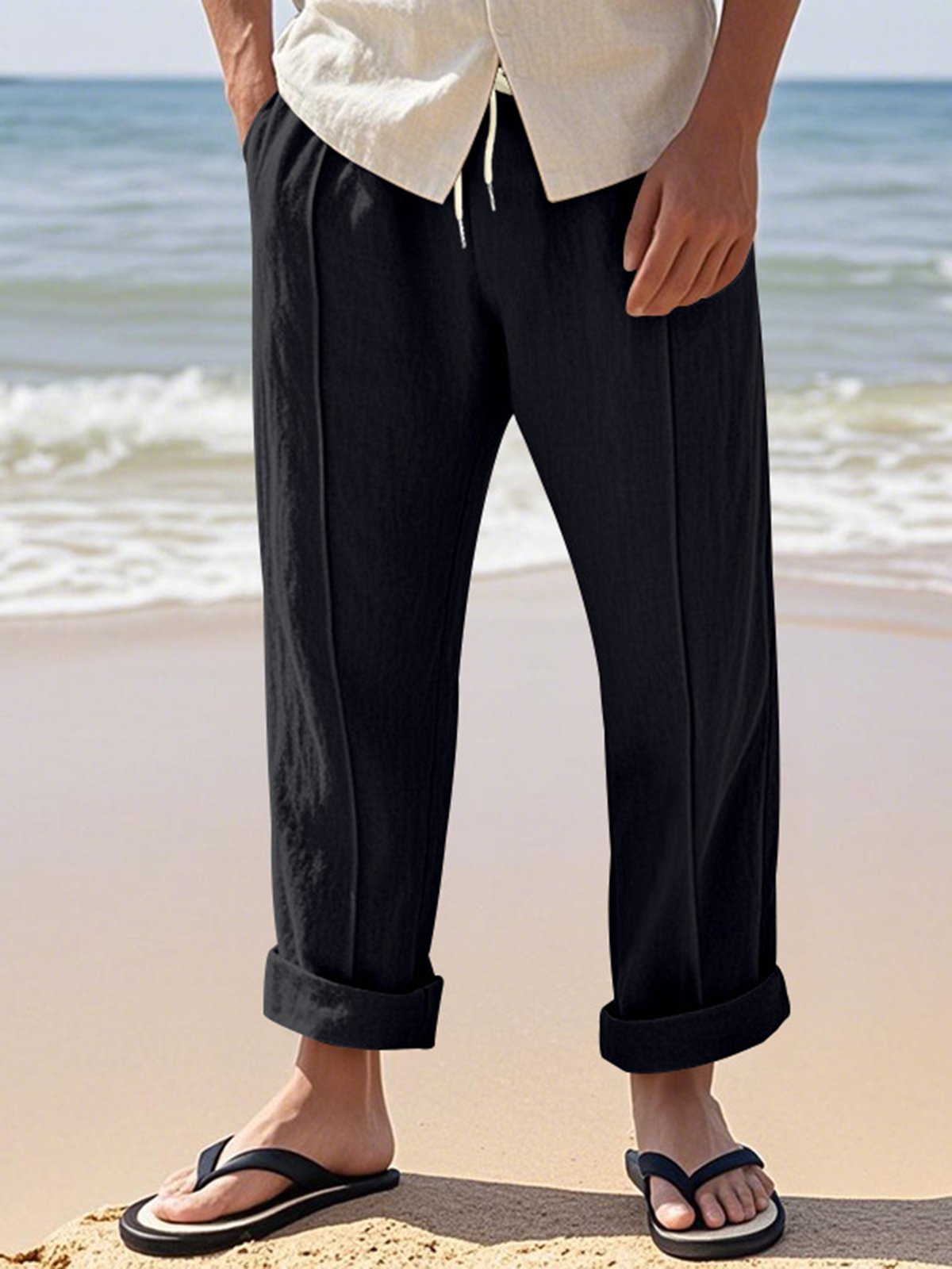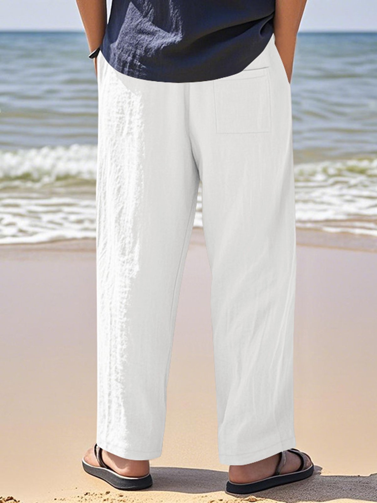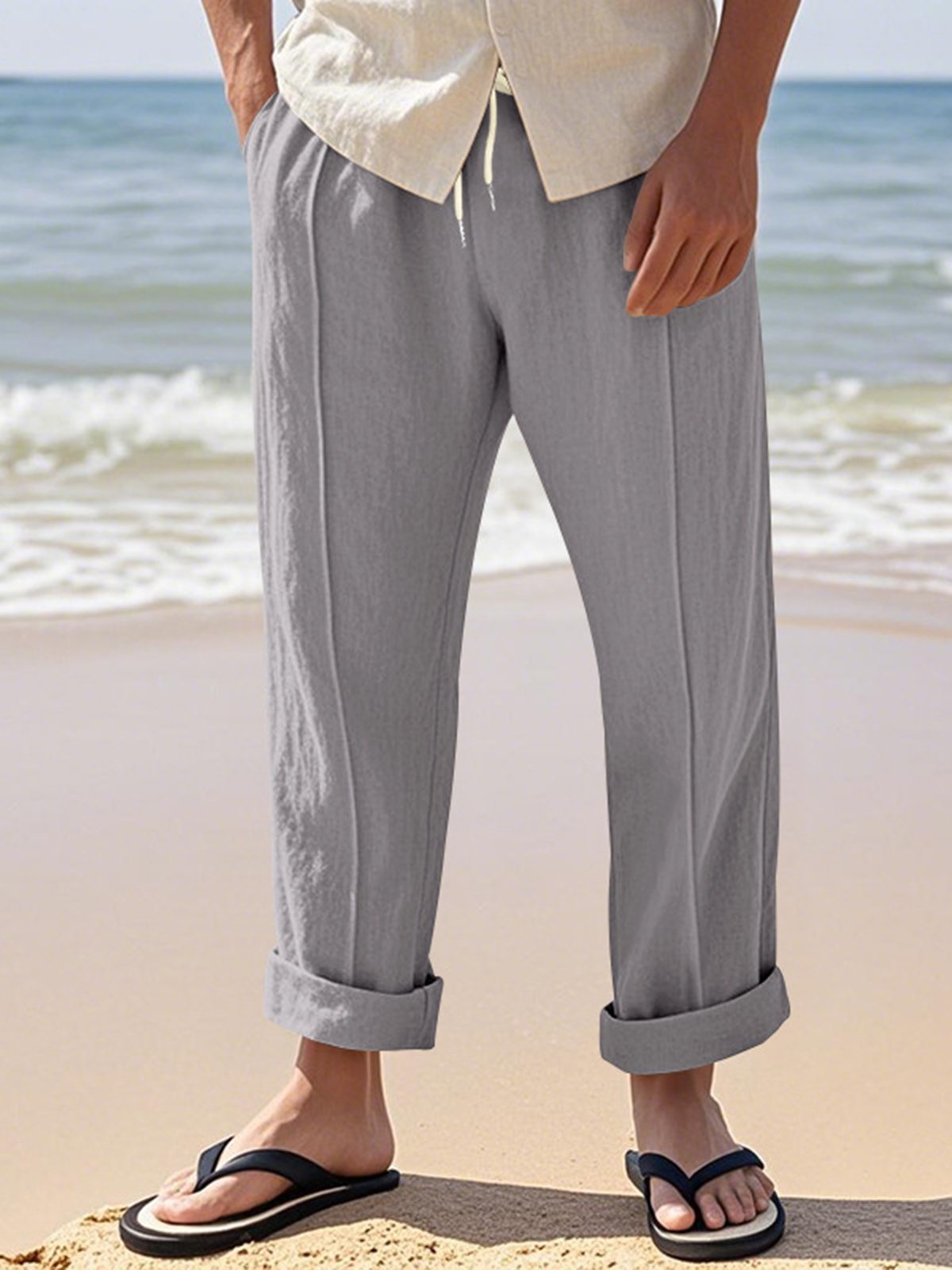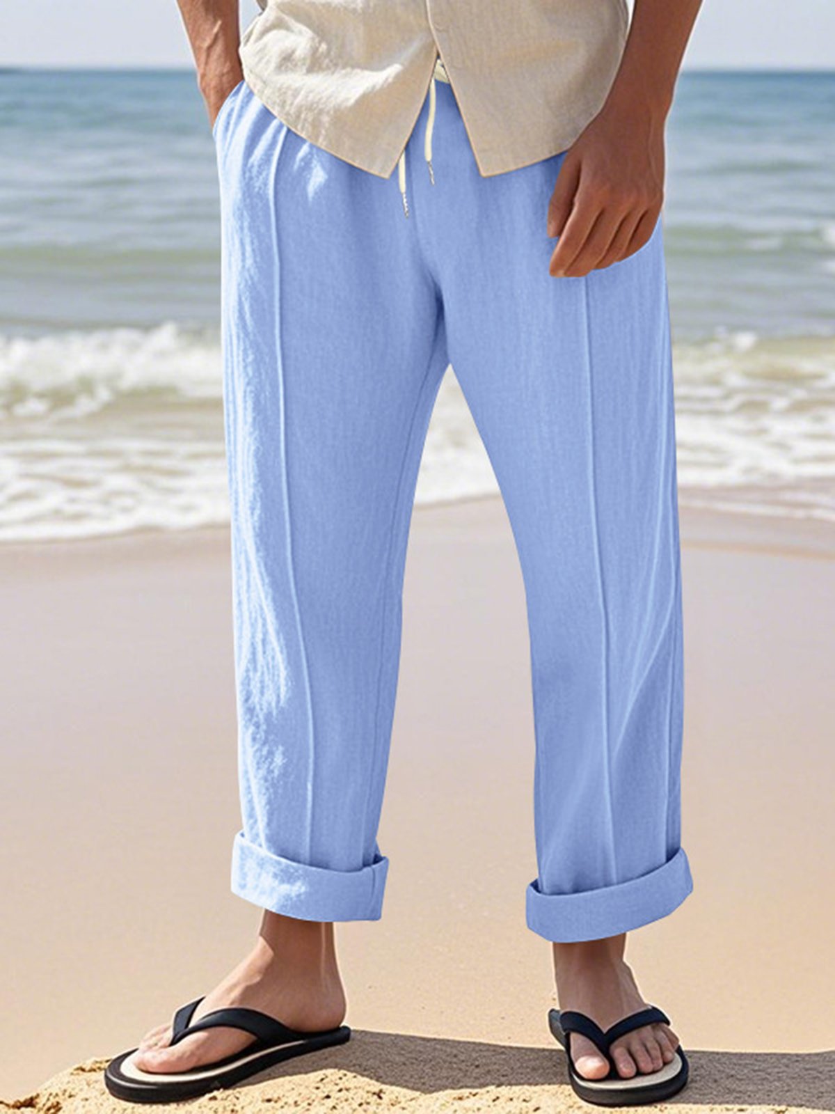 Alohadaddy® Linen Summer Pants Men's Thin Sports Loose Drawstring Wide Leg Straight Men's Casual Pants Big & Tall
