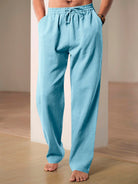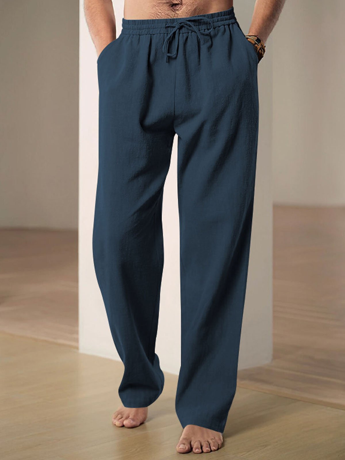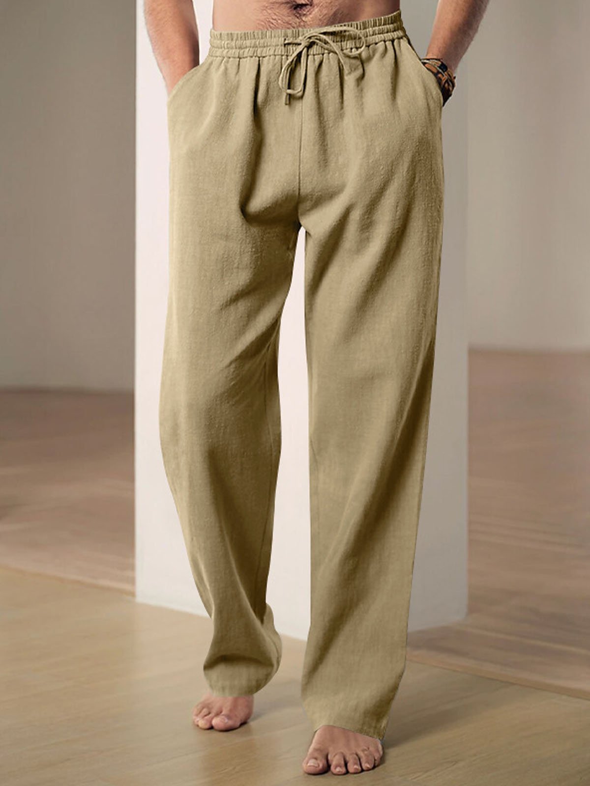 Alohadaddy Casual Cotton and Linen Men's Bamboo Linen Drawstring Quick-Drying Breathable Trousers Big & Tall