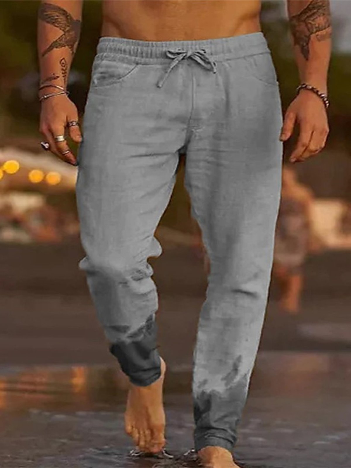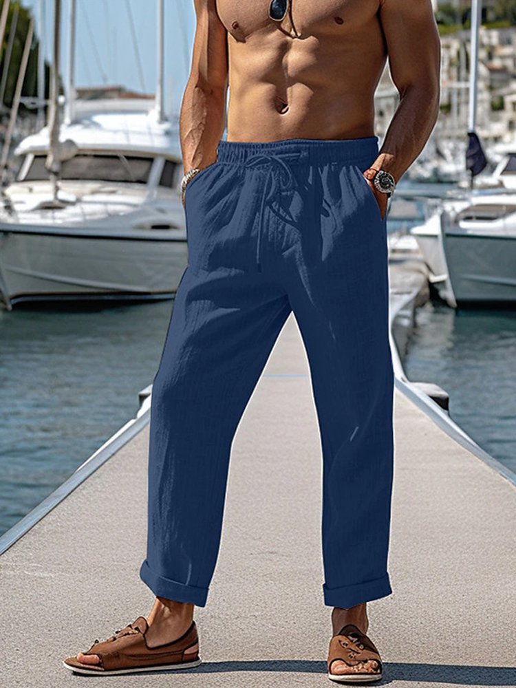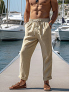 Alohadaddy Men's Outdoor Leisure Holiday Cotton Linen Loose Elastic Waist Trousers