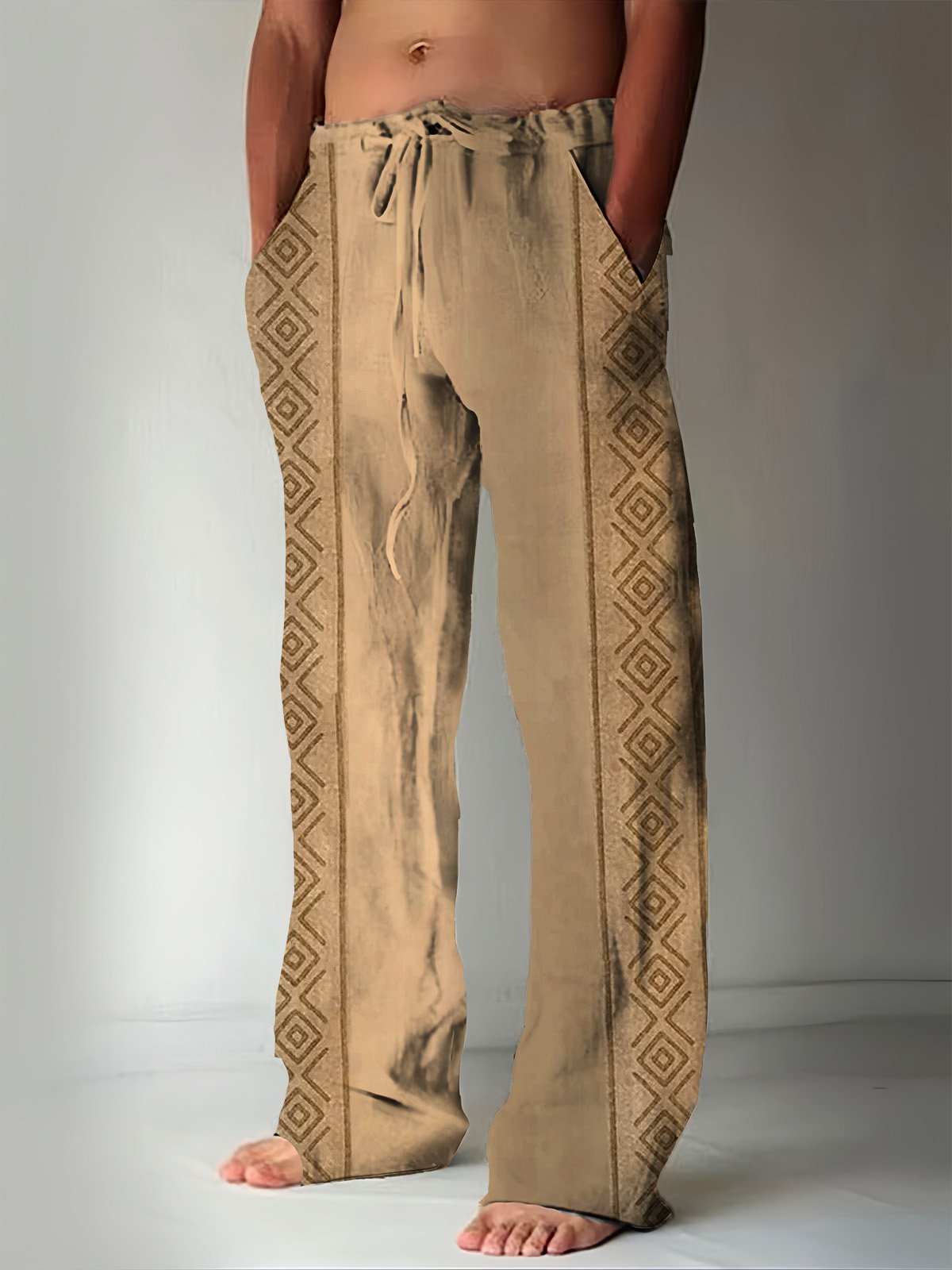 Alohadaddy Retro Geometric Azcott Print Men's Casual Trousers