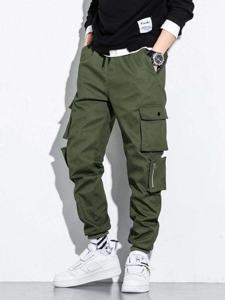 Men's casual multi-pocket loose large-size sports beamed feet cropped overalls trousers