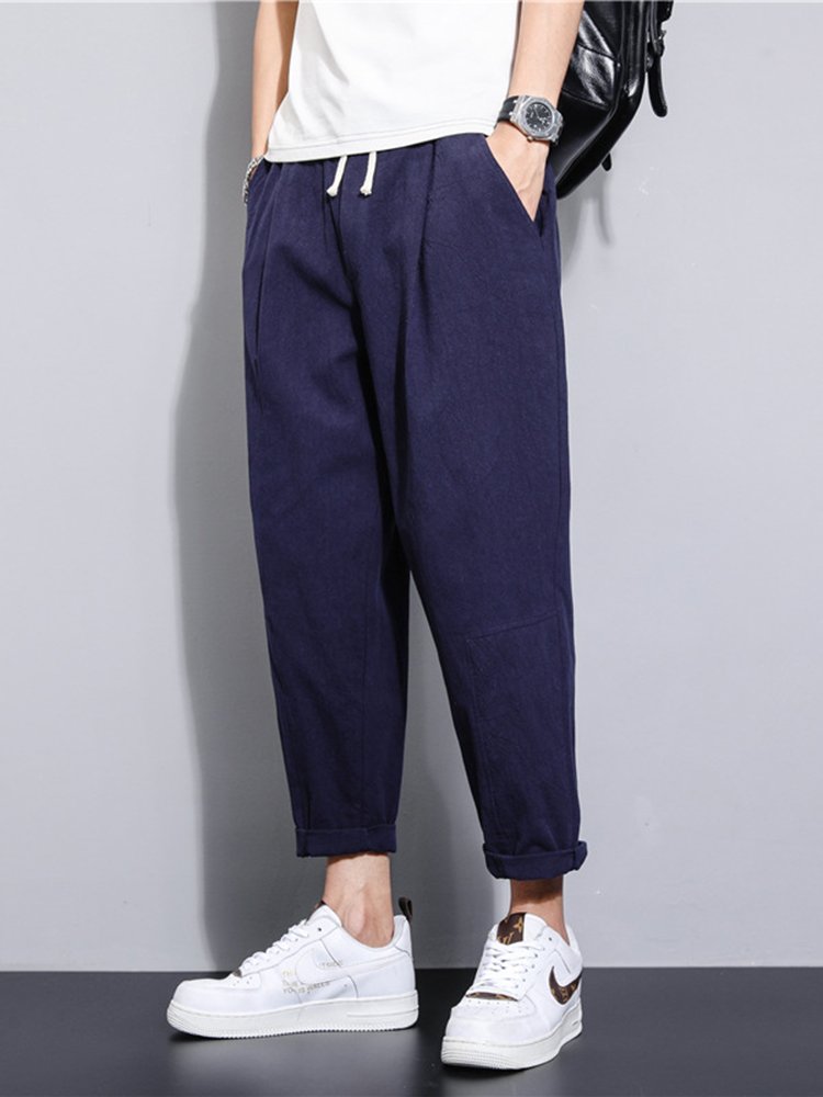 Men's Cotton Linen Loose Linen Straight Leg Trousers