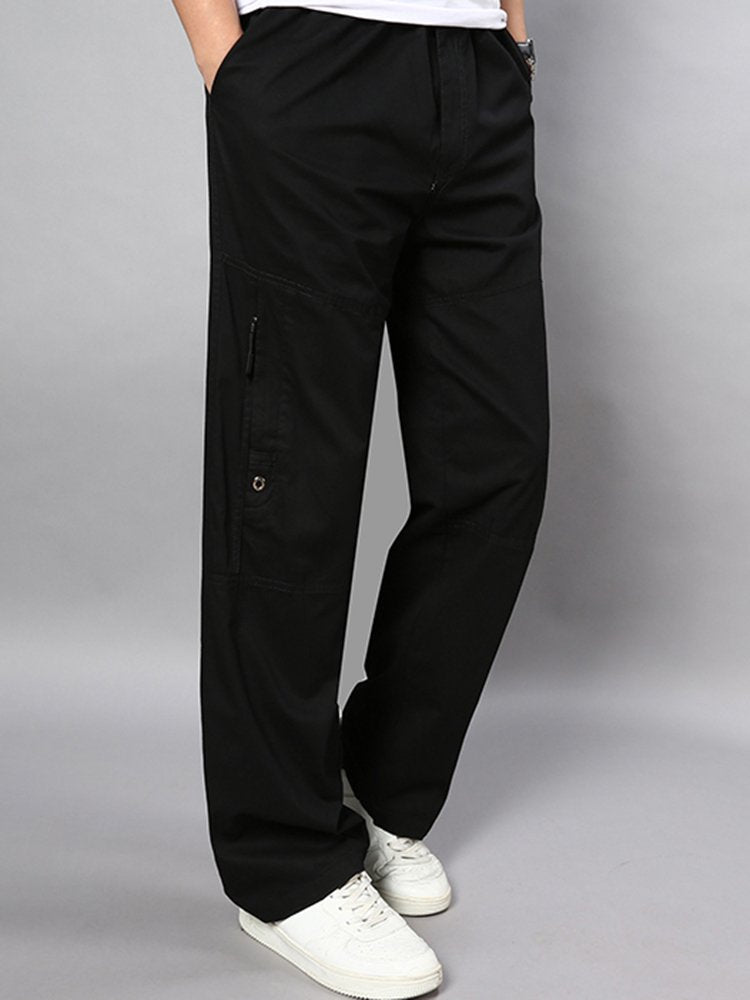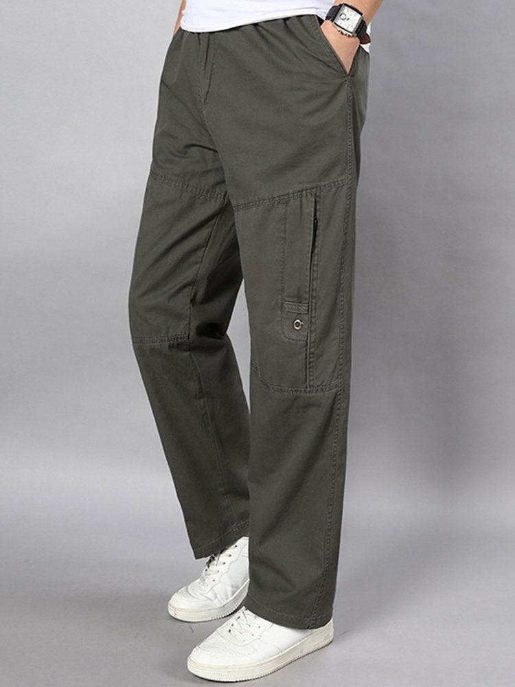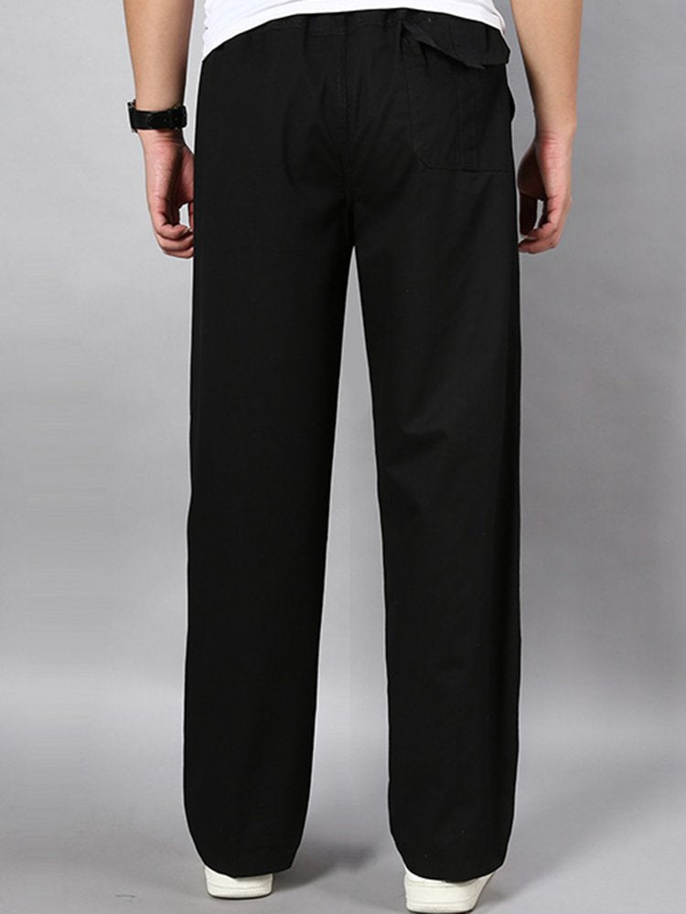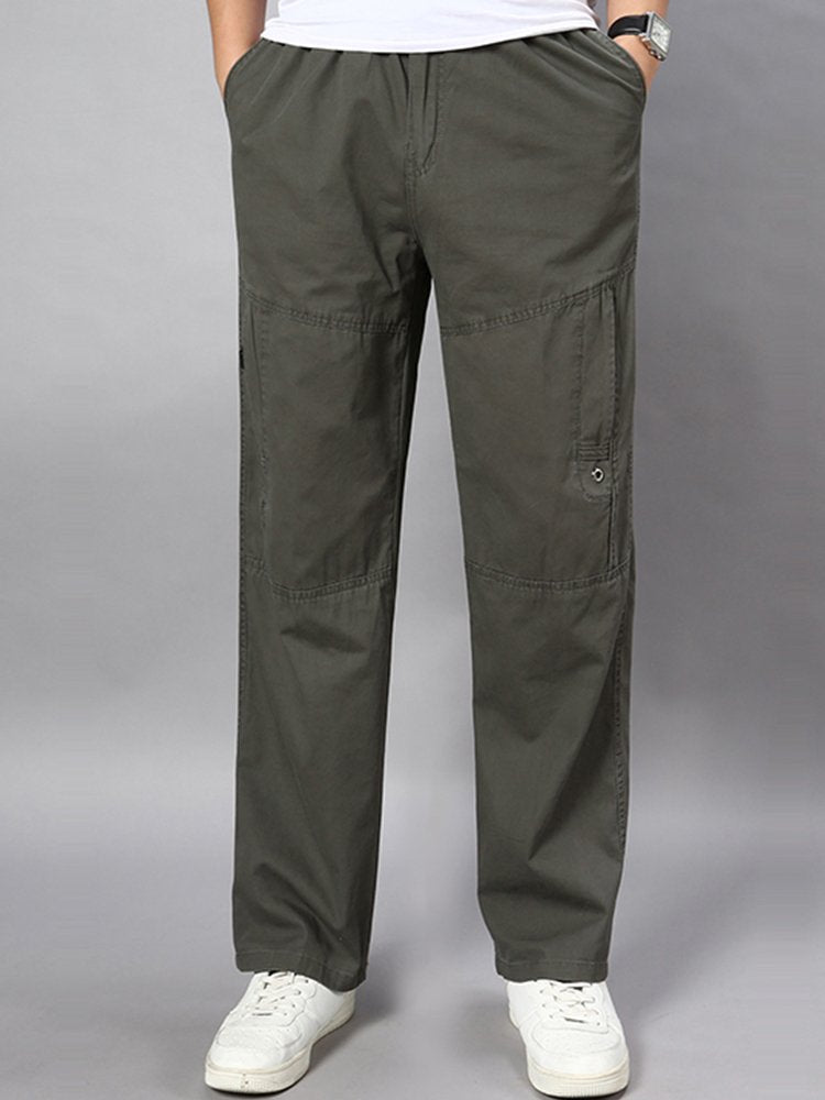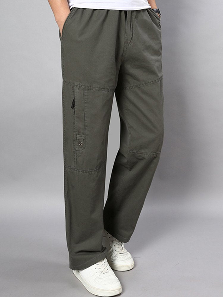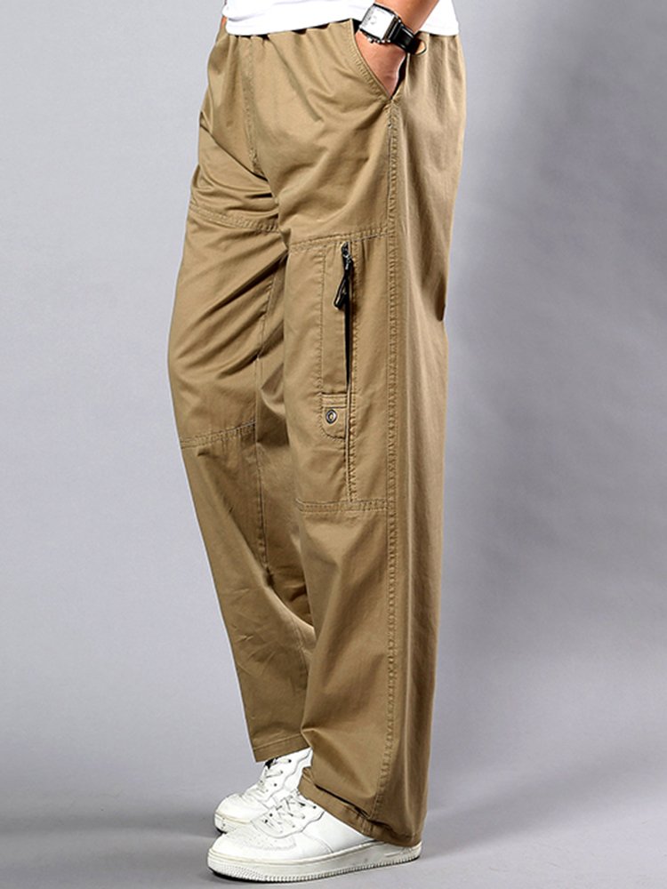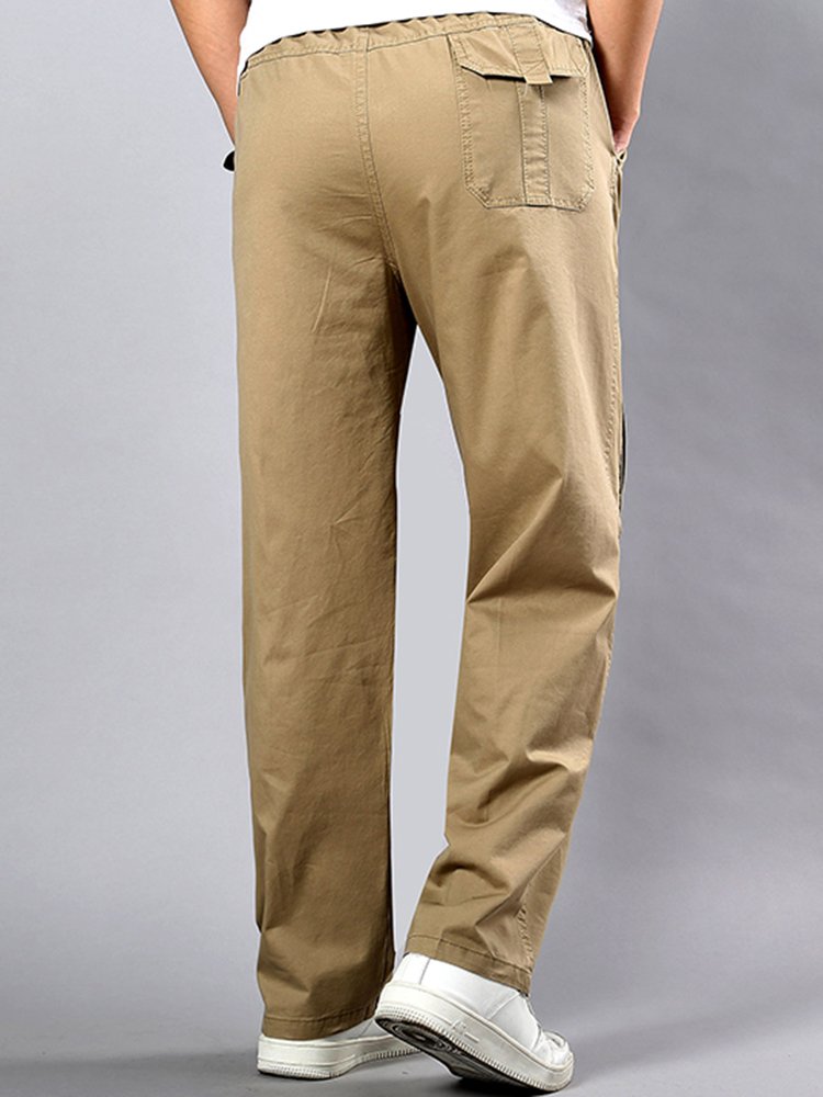 Men's Elastic Belt Straight Loose Fit Cotton Plus Size Plus Size Casual Trousers