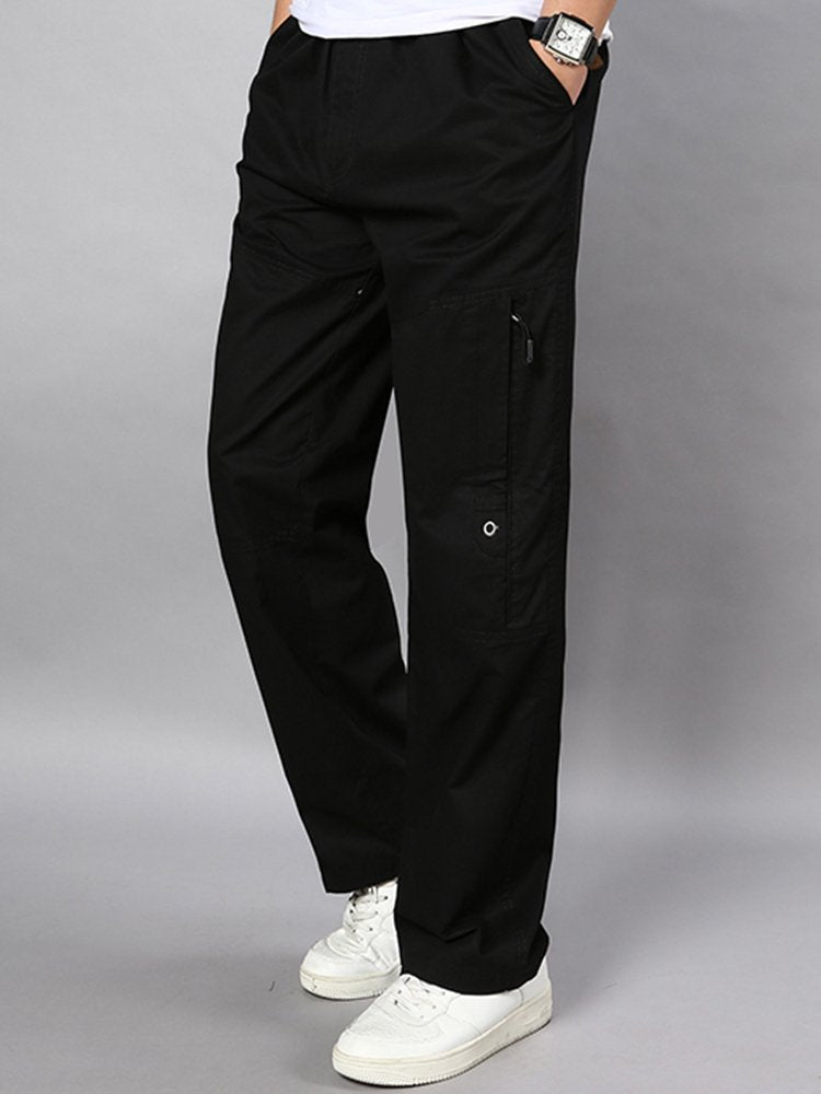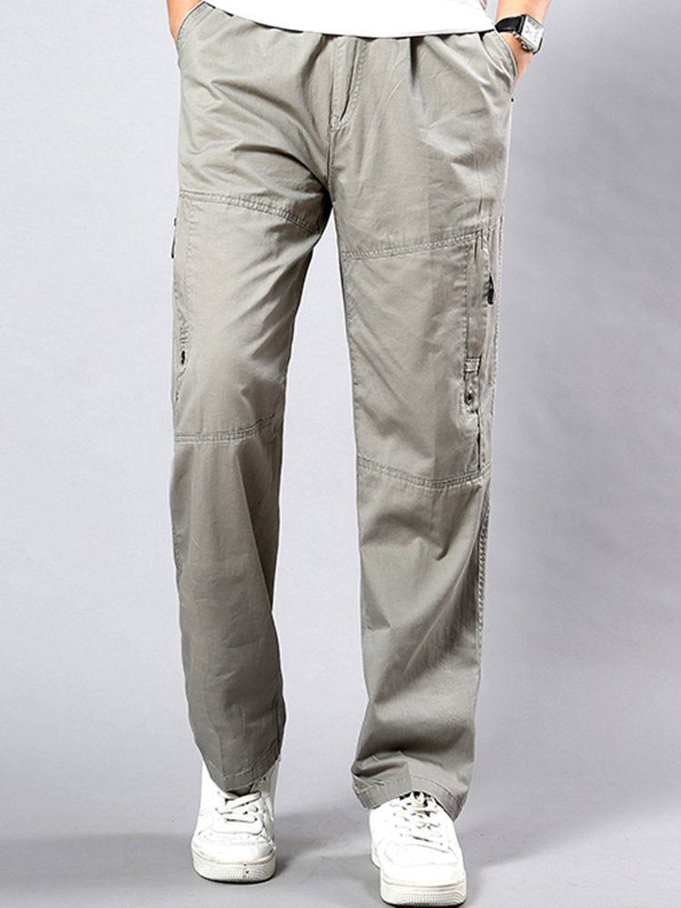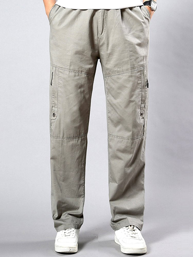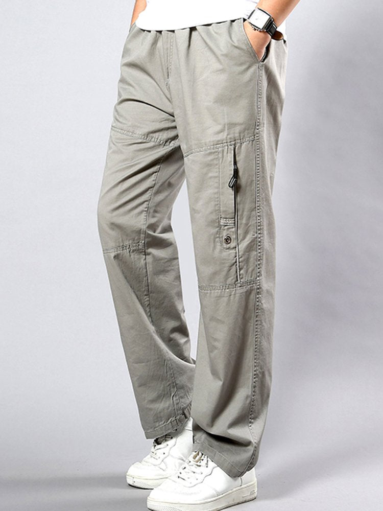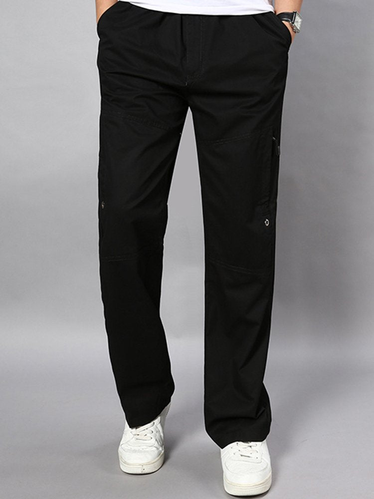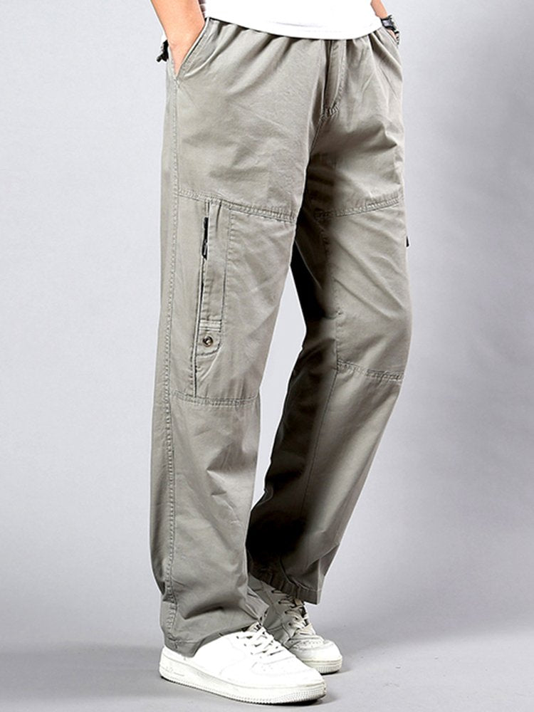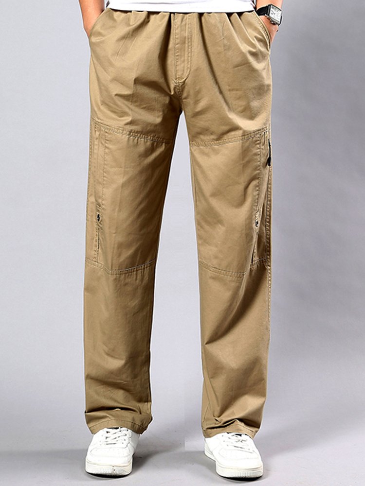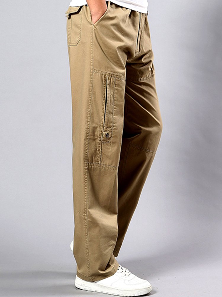 Men's Elastic Belt Straight Loose Fit Cotton Plus Size Plus Size Casual Trousers