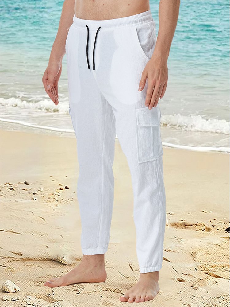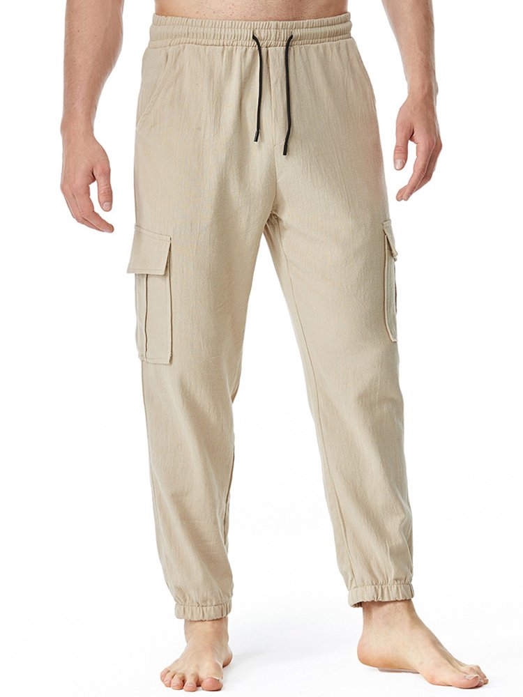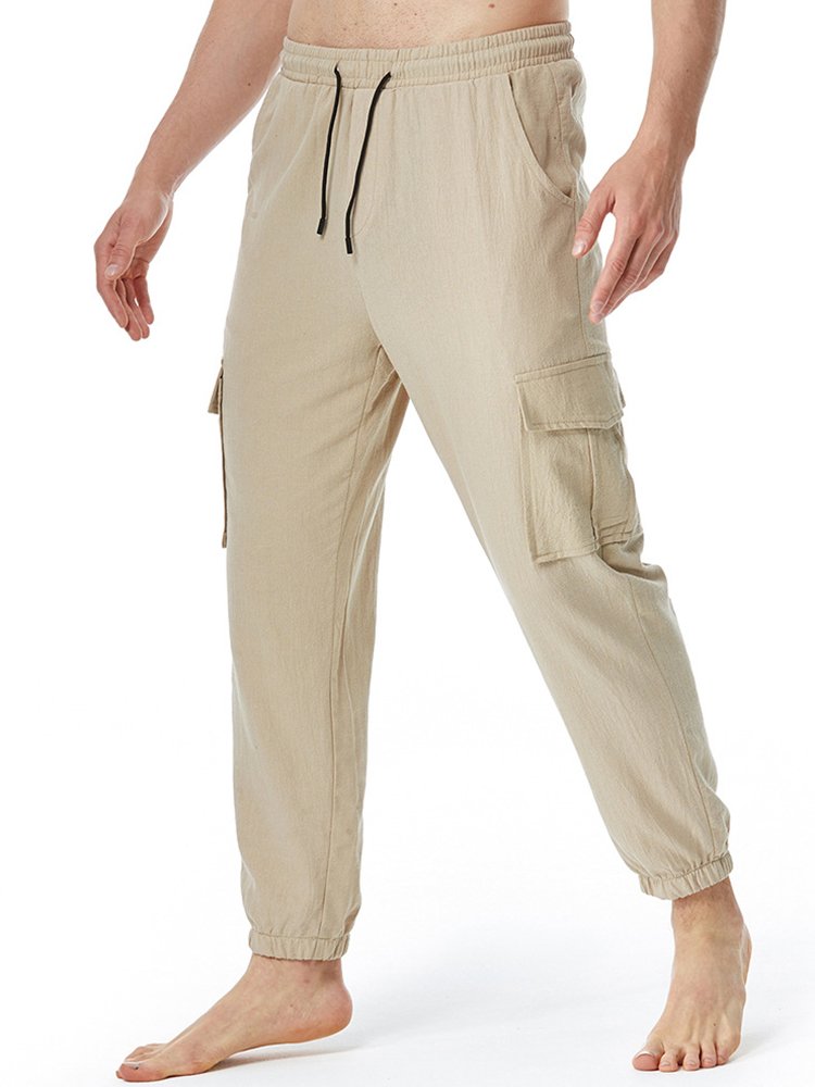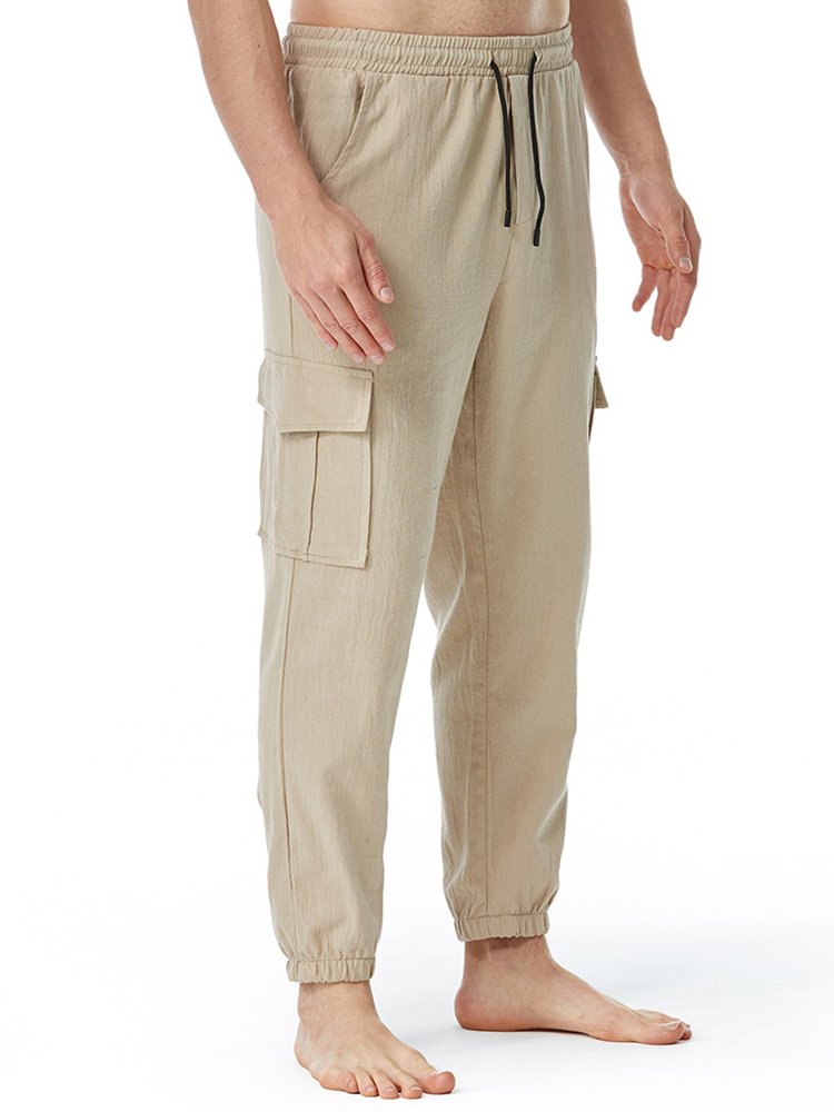 Men's Linen Cotton Loose Casual Lightweight Elastic Waist Pants Yoga Pants Trousers