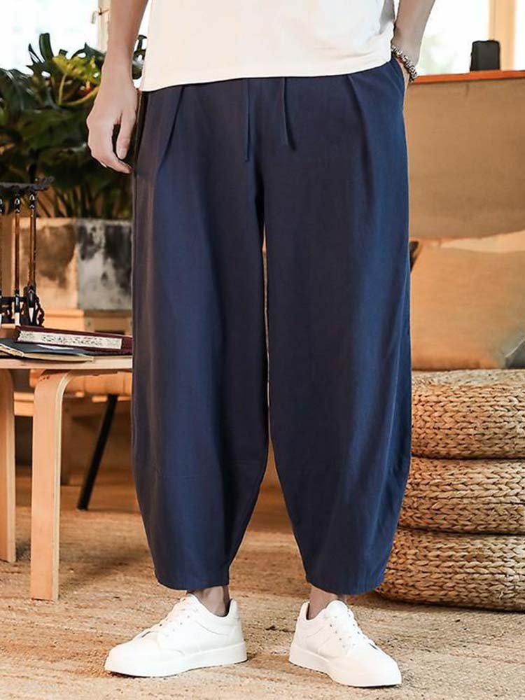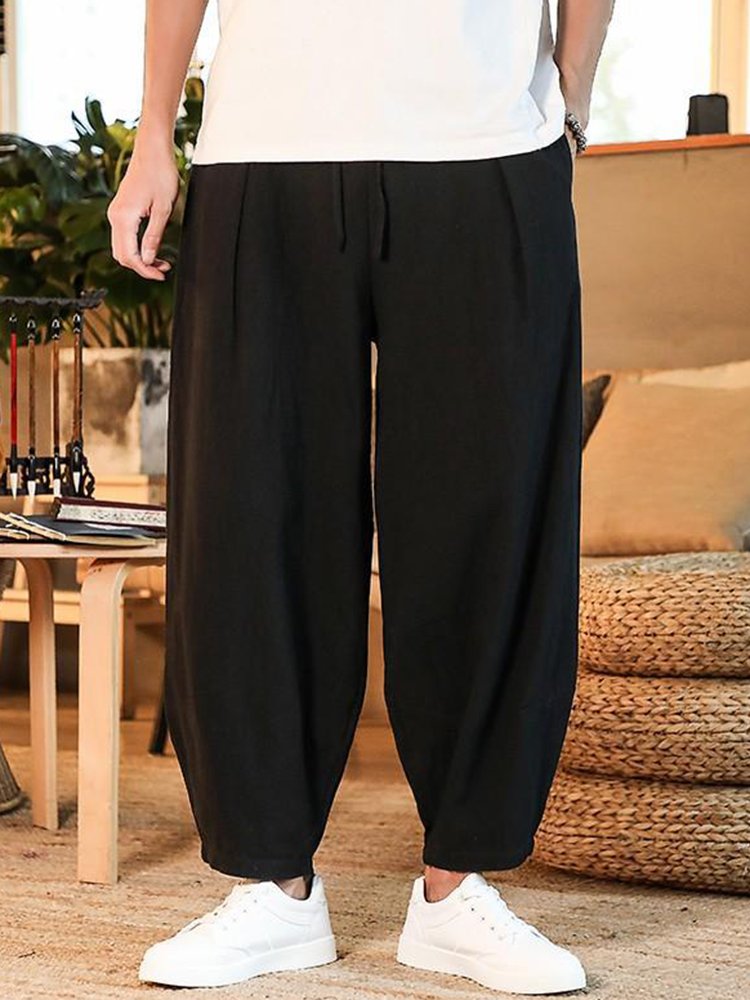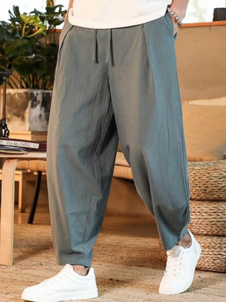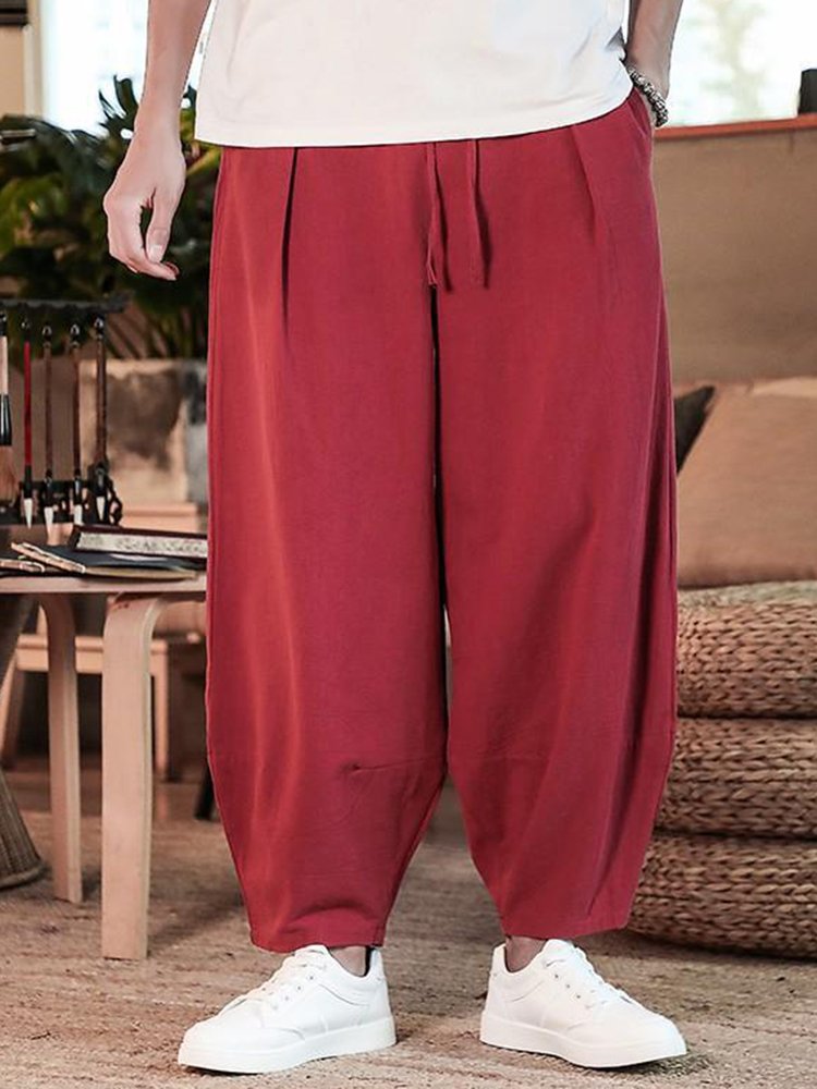 Men's Loose Linen Solid Color Casual Pants