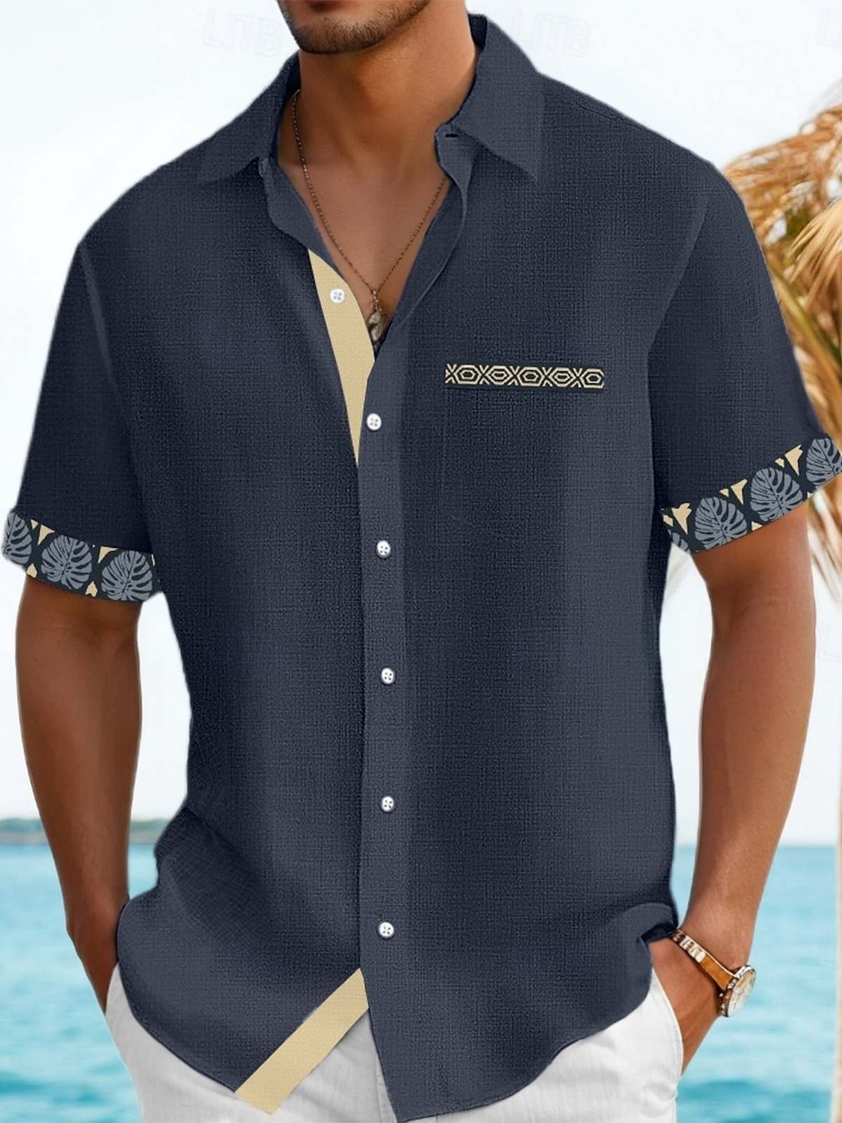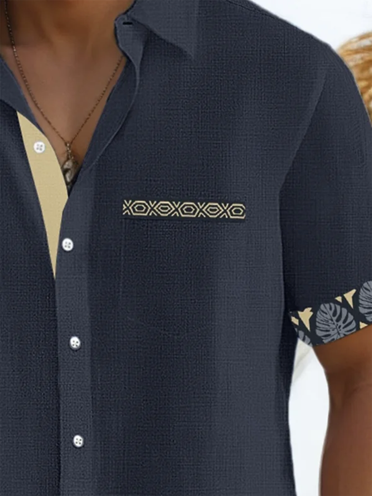 Alohadaddy® Casual Contrast Ethnic Pockets Moisture Wicking Men's Short Sleeve Shirt