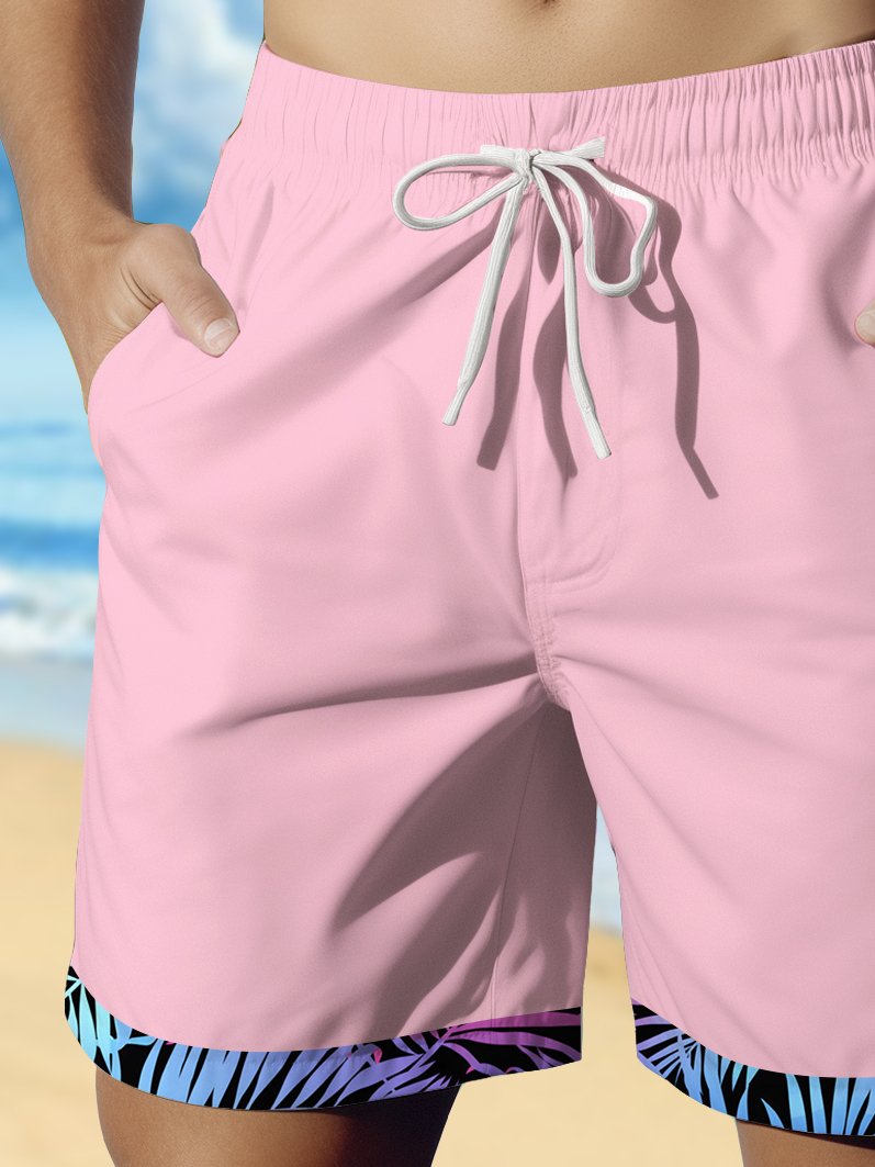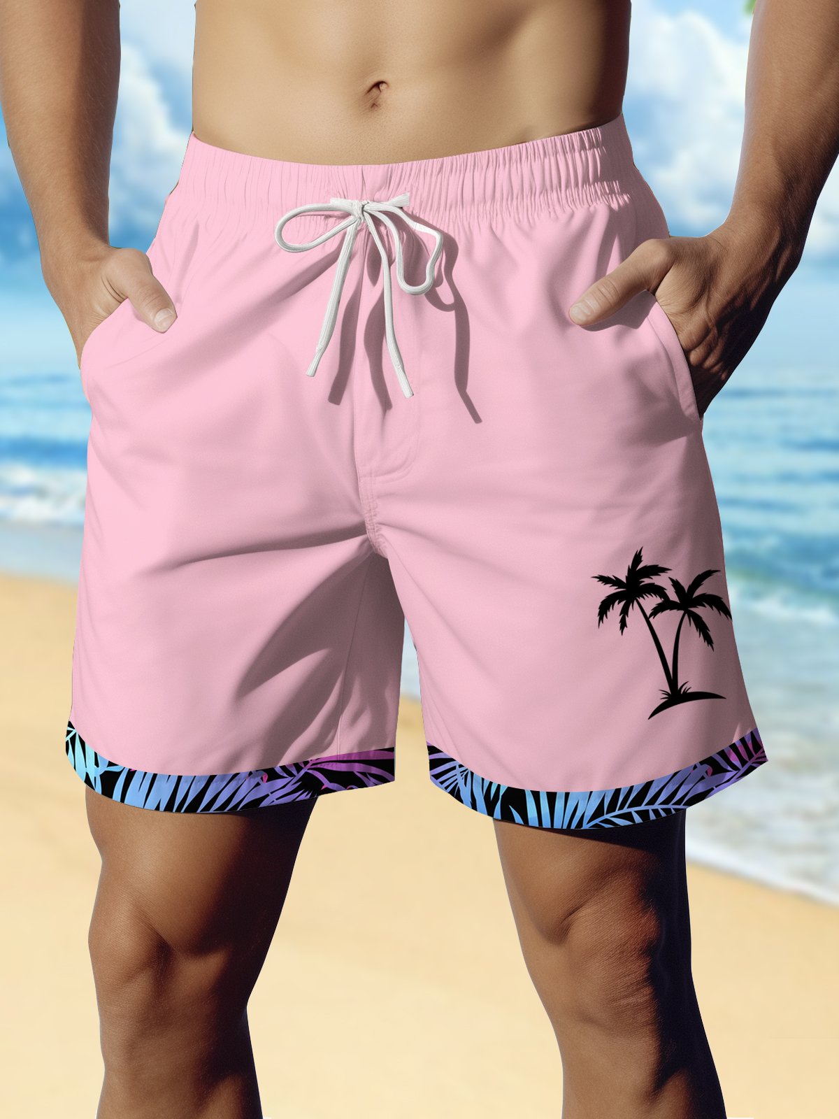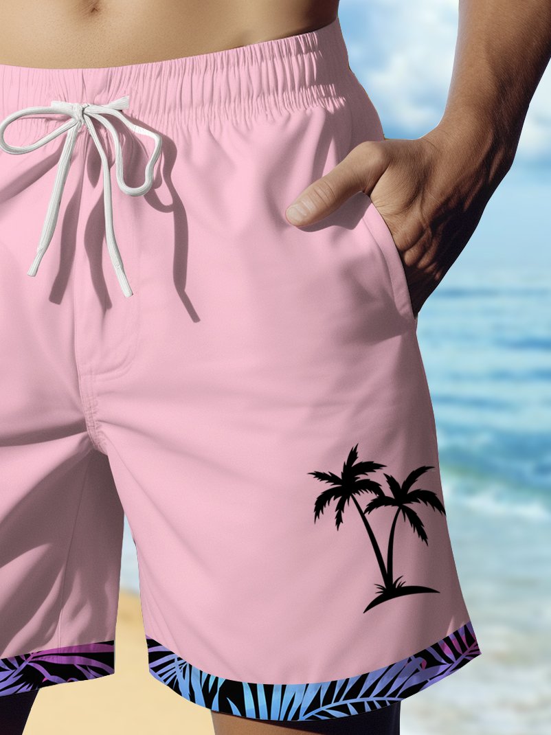Alohadaddy Hawaiian Plant Coconut Tree Patchwork Print Men's Beach Shorts