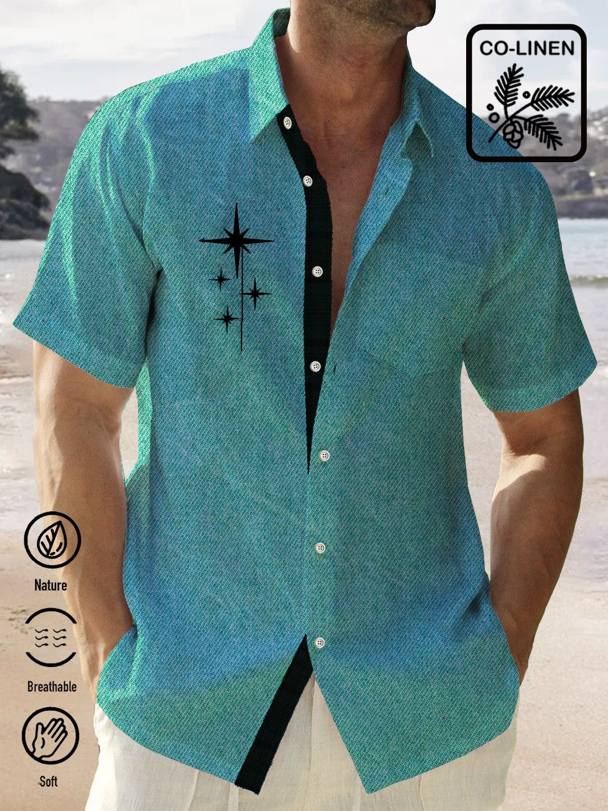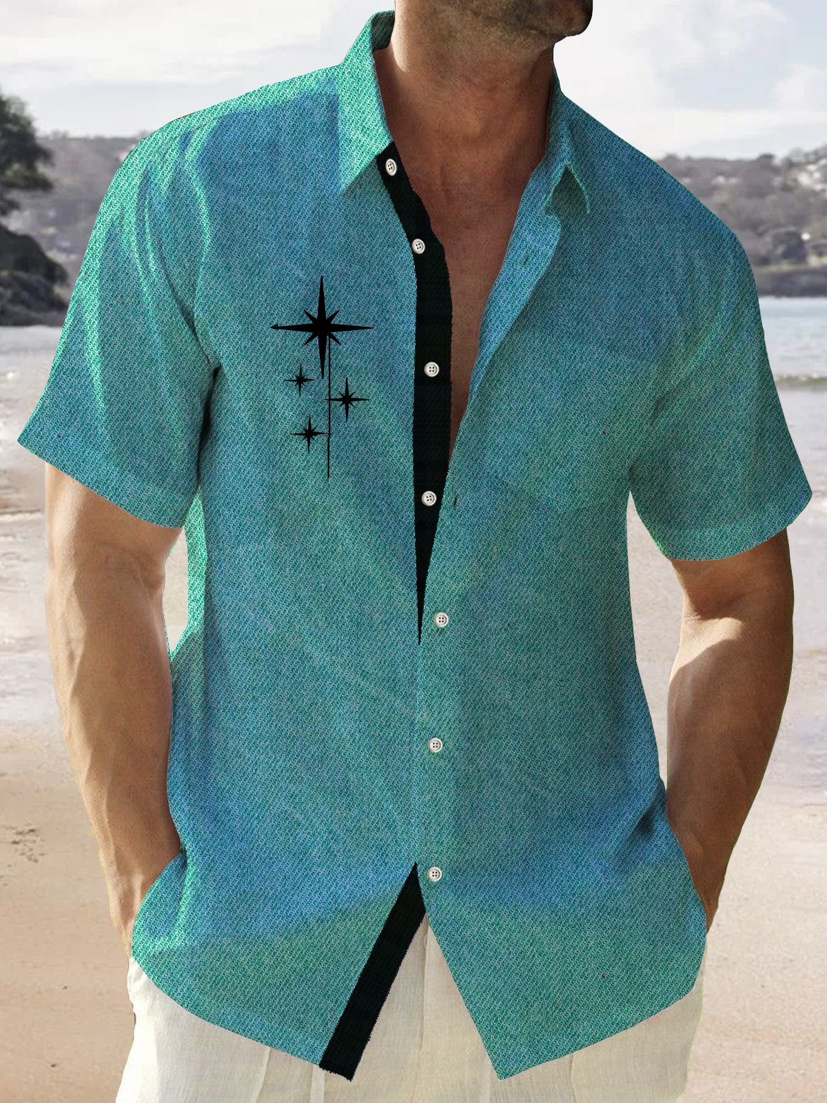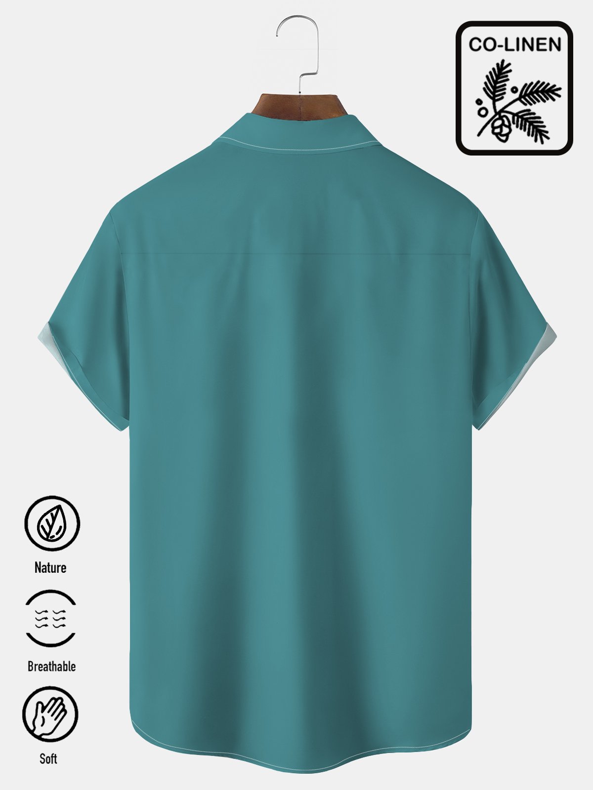 Alohadaddy Linen Green Geometric Stripe Print Chest Bag Shirt Plus Hawaiian Shirt