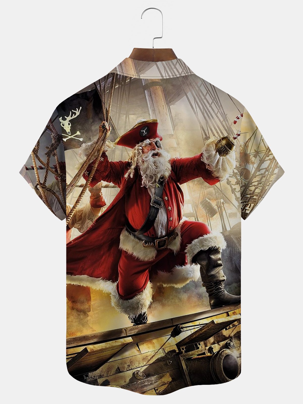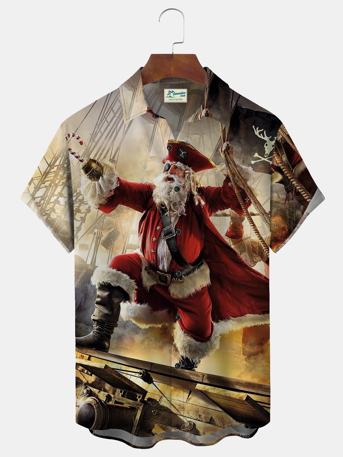 Alohadaddy Beach Vacation Pirate Santa Men's Hawaiian Shirts Stretch Plus Size Aloha Camp Button Pocket Shirts